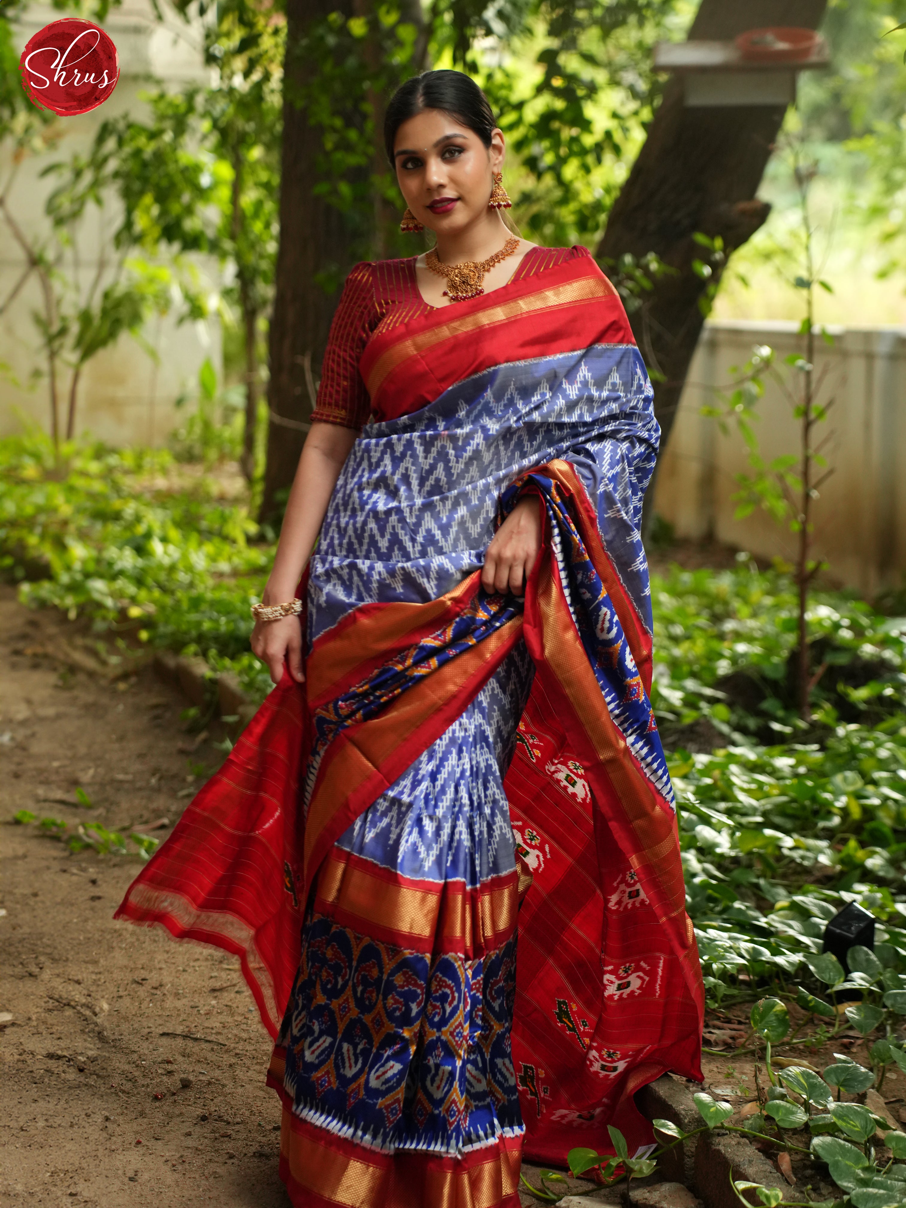 Blue and Red- Ikkat Silk Saree