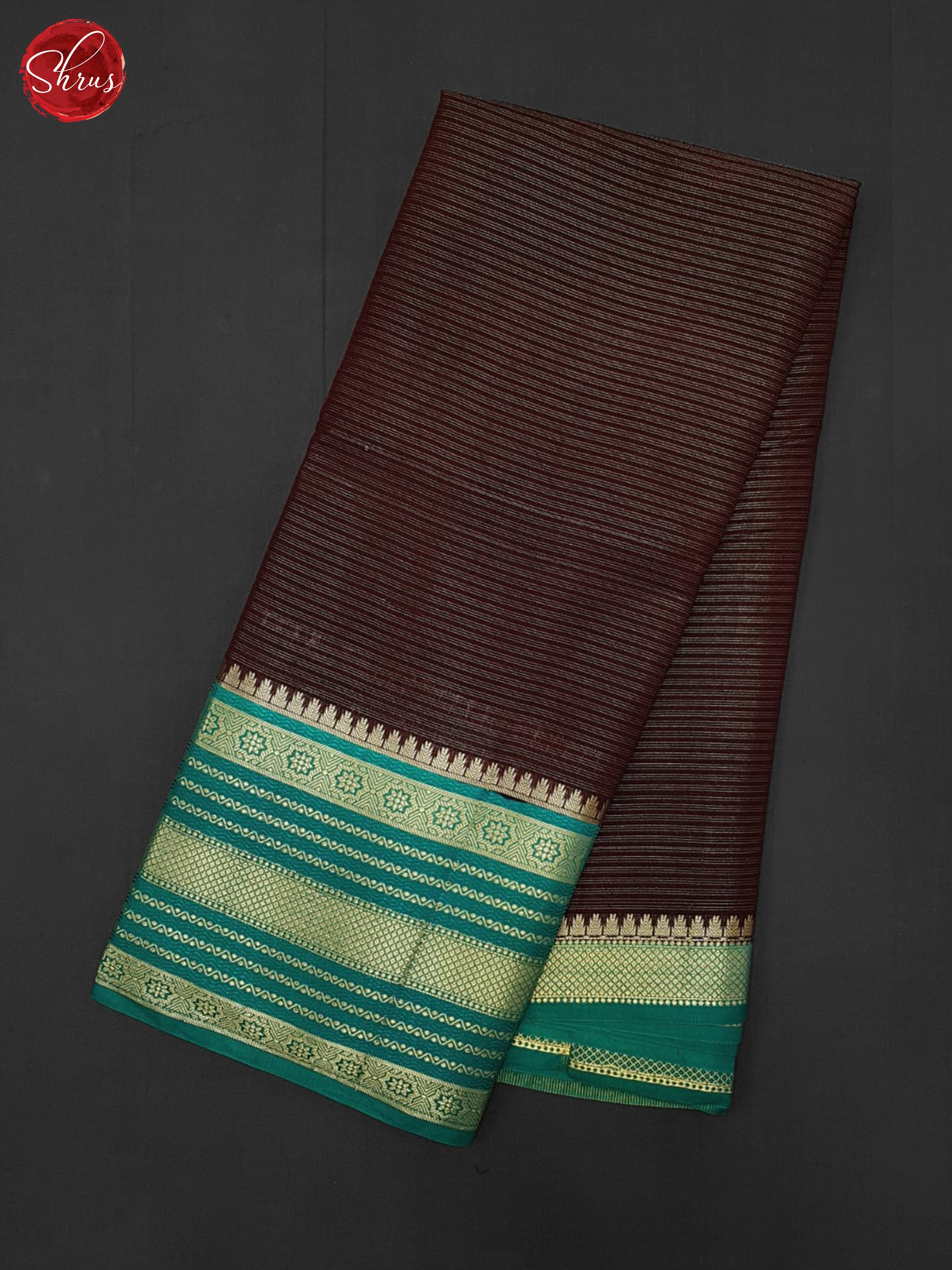 Elegant Brown Semi dupion saree enchants with plain body & bounded with Blue zari woven border .The contrast Blue zari woven Pallu & blouse with zari border completes the ensemble
