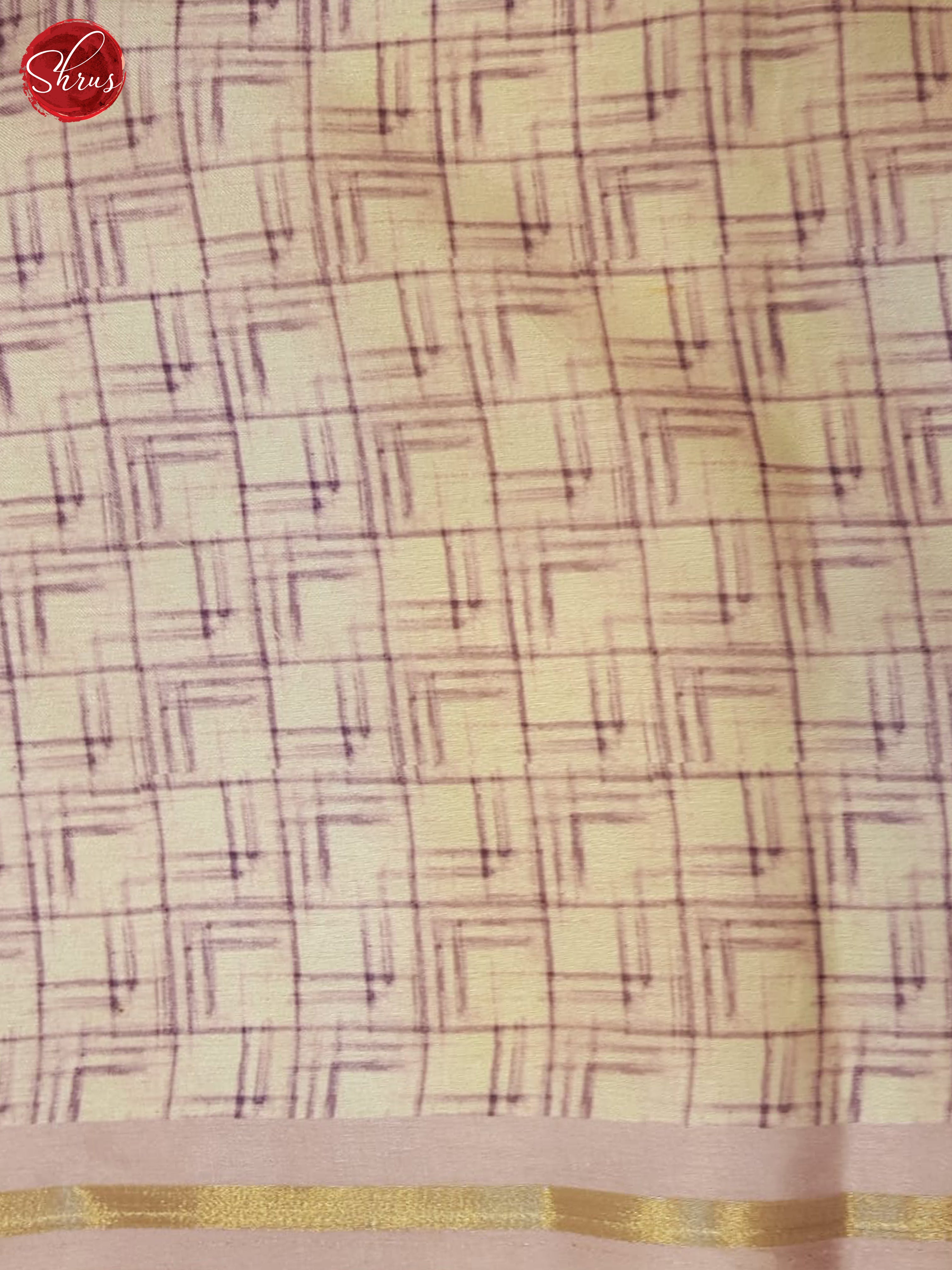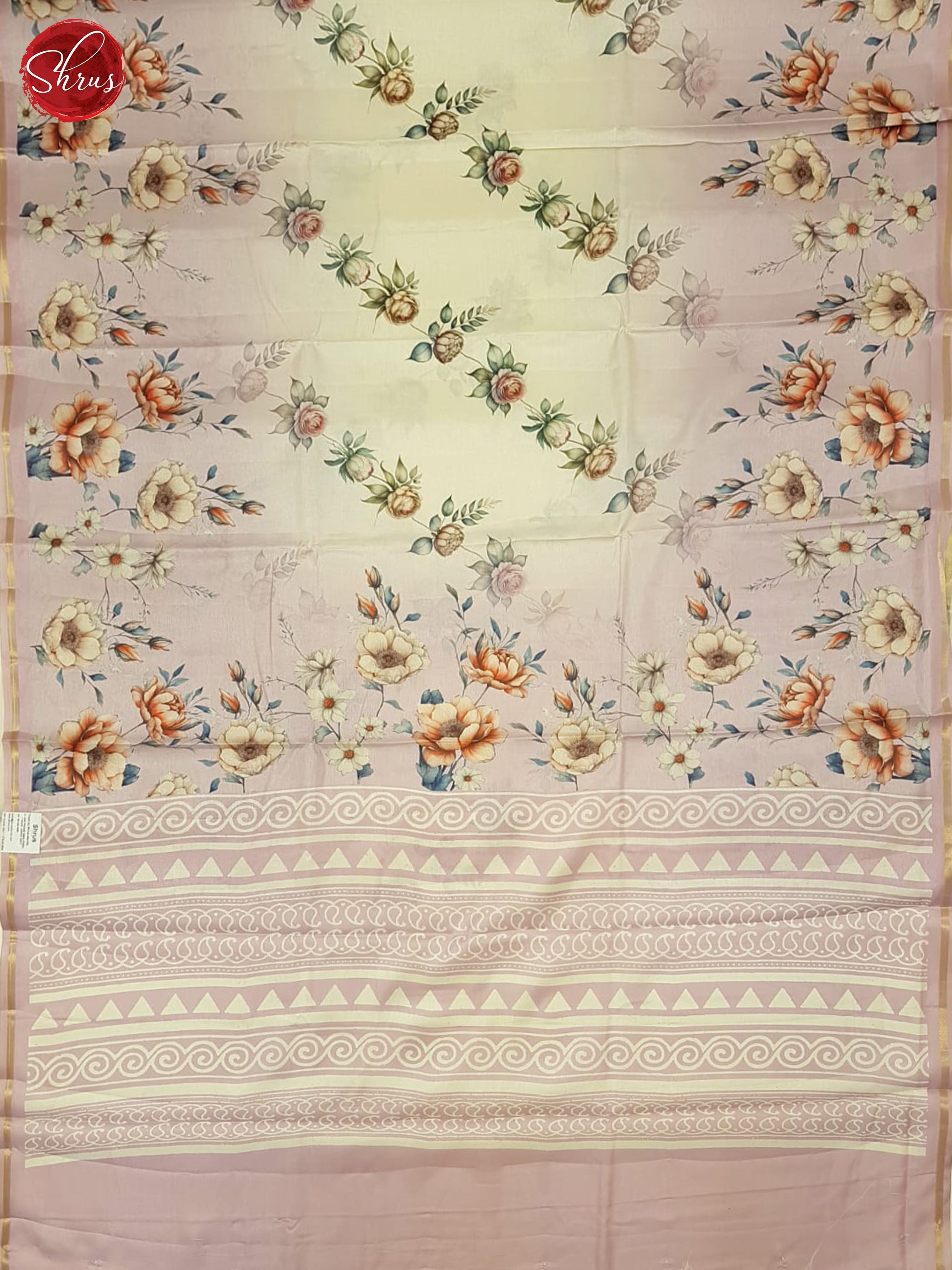 Pretty Cream & Mild lavender Semi Tussar saree enchants with floral printed Body & Bounded with zari border adds charms . The self printed Pallu And self Blouse gives a chic twist