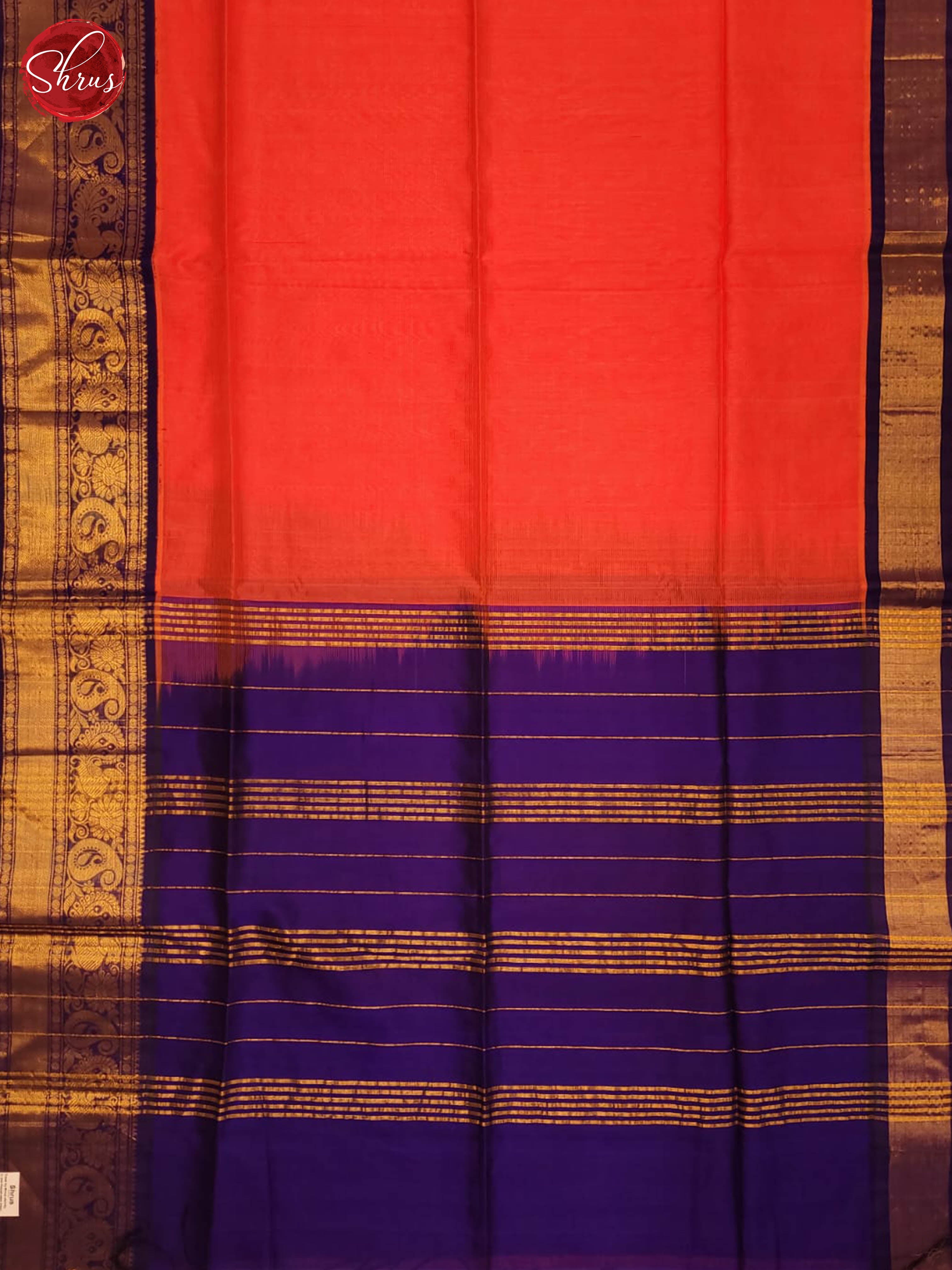 beautiful Orange Silk Cotton Saree enchants with plain Body & bounded by a Contrast Violet Zari Border . The splendid Contrast Violet zari woven brocade Pallu And plain Blouse with zari Border gives a chic twist