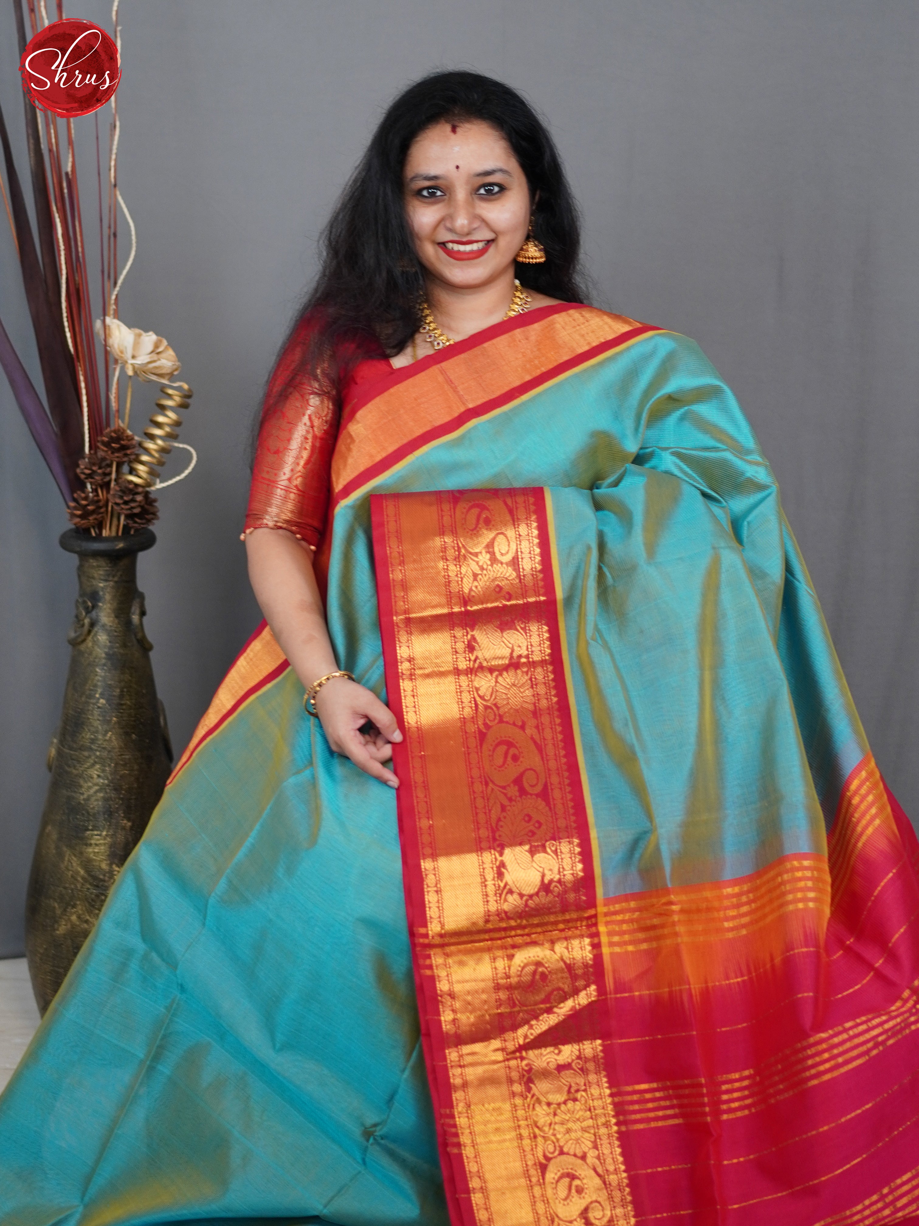 Blue & Red - Silk Cotton Saree