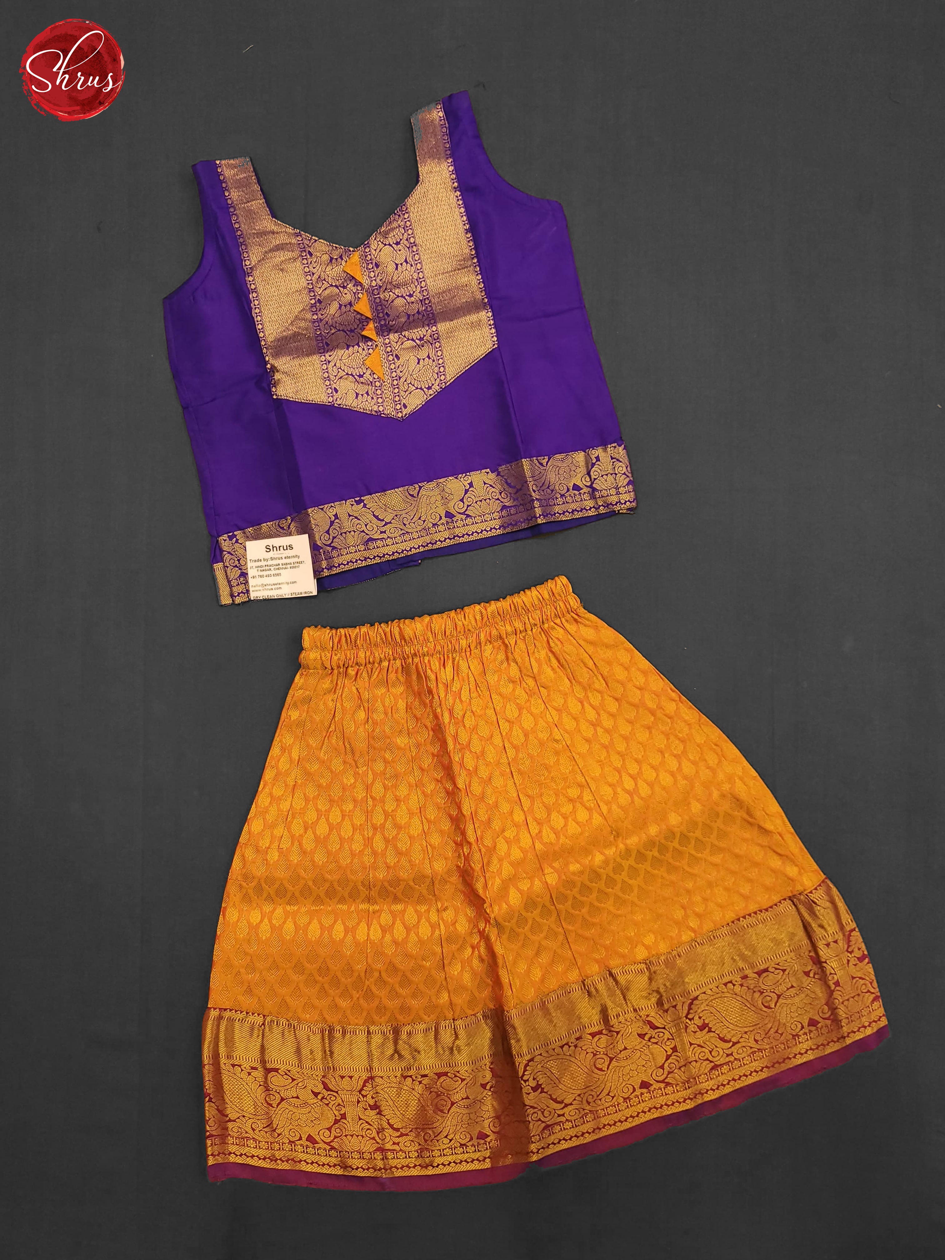 Purple and Yellow- Stitched Pure Pattu Pavadai(Age1-2yrs)