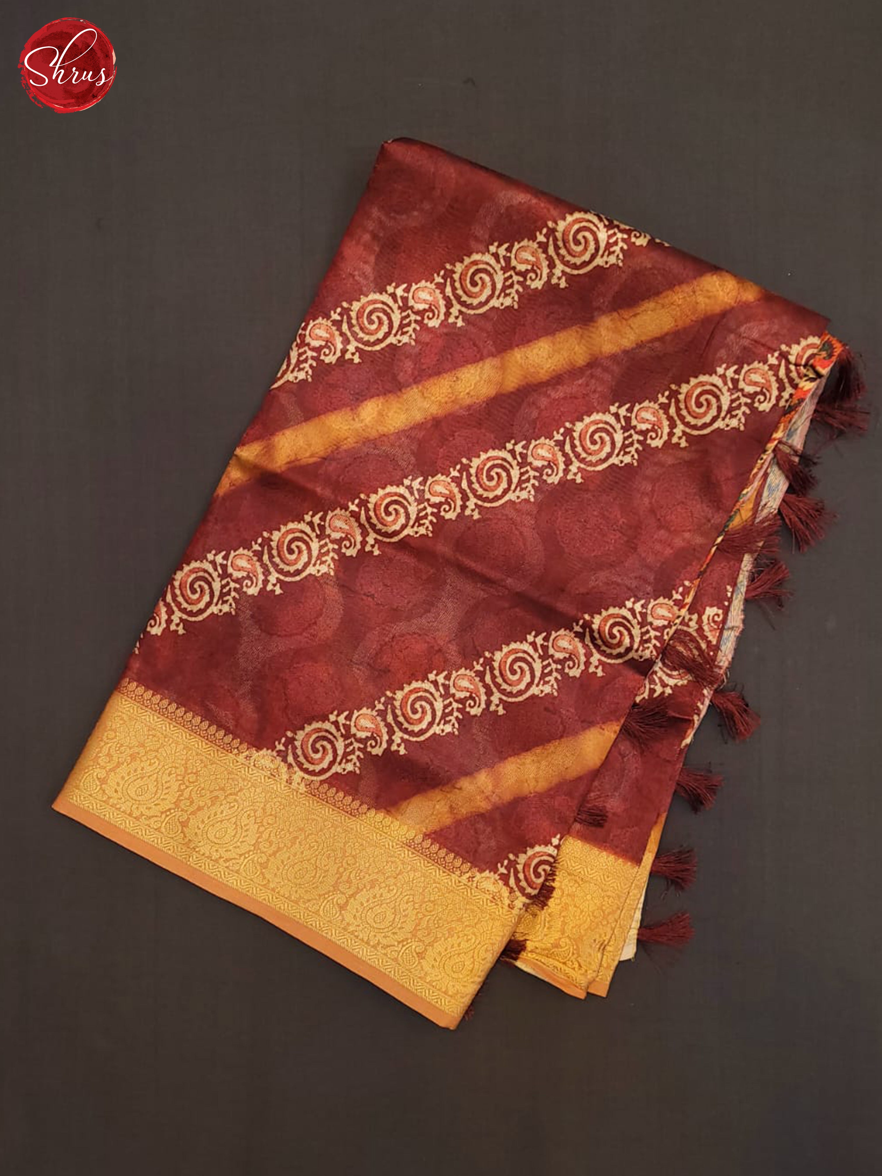 Classy Maroon Semi Jute Silk Saree enchants with floral print on the body & bounded with zari border & printed pallu compliments beautifully Comes with printed Maroon blouse with zari border
