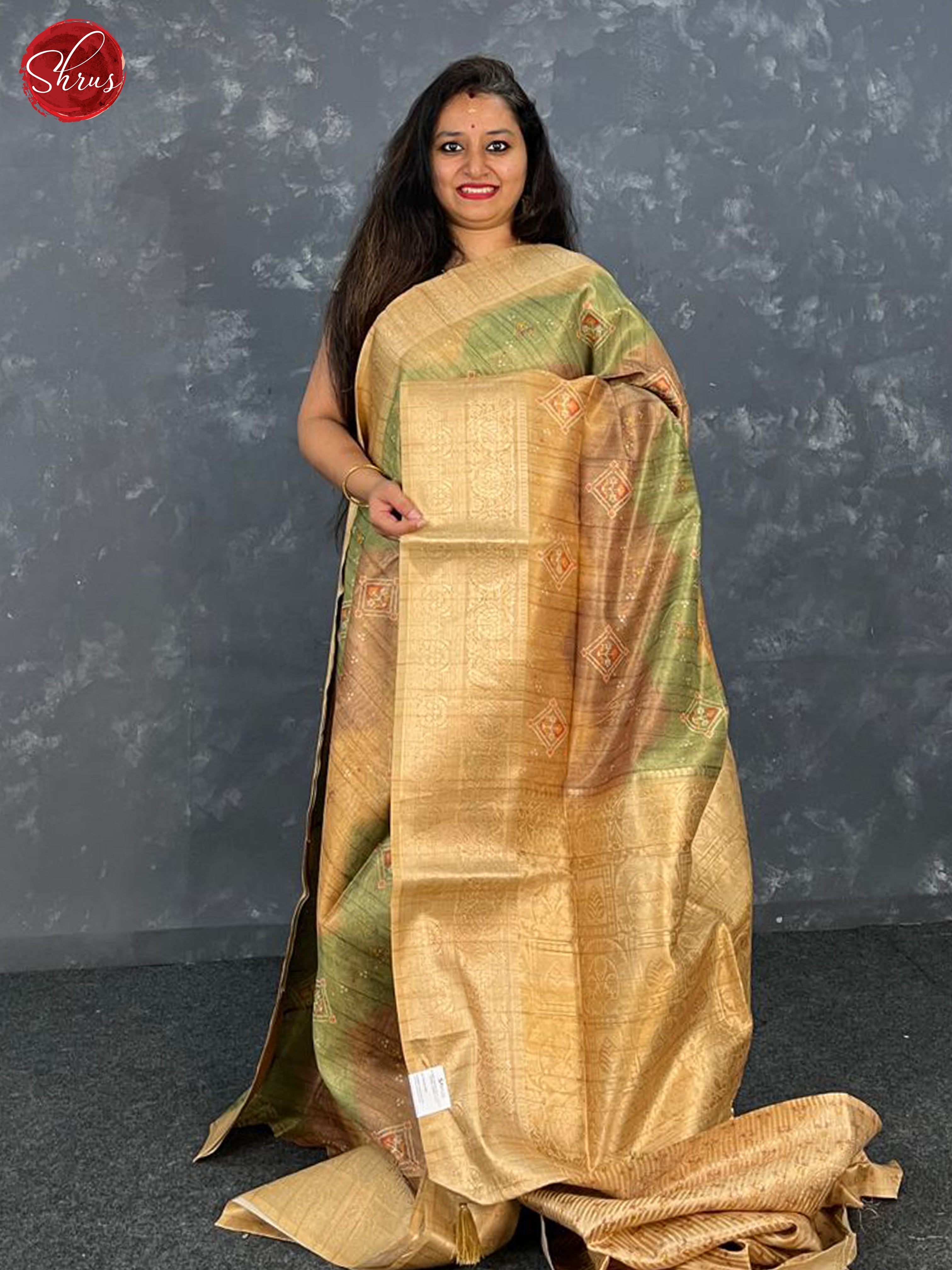 Dull Gold(Single Tone)- Semi Jute with floral Print on the Body & zari Border
