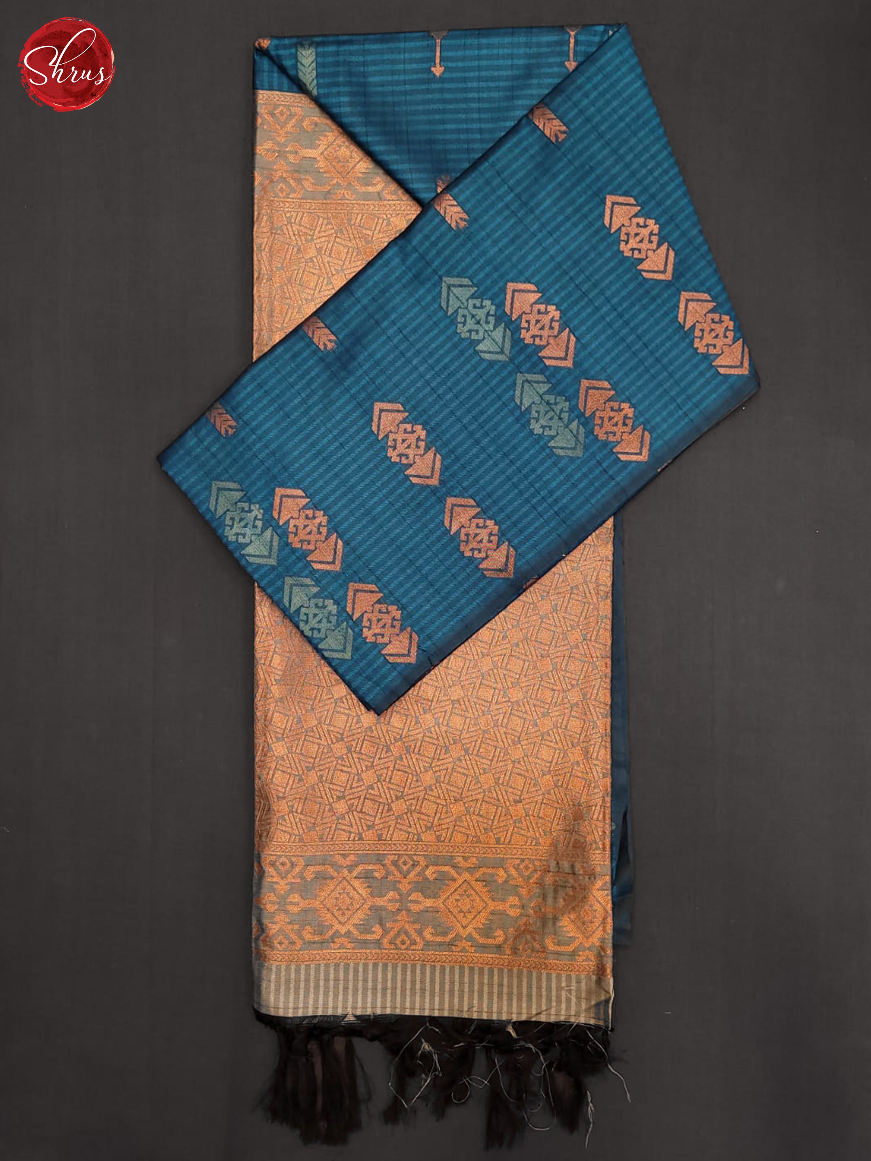 Blue & Grey- Semi Raw silk Saree