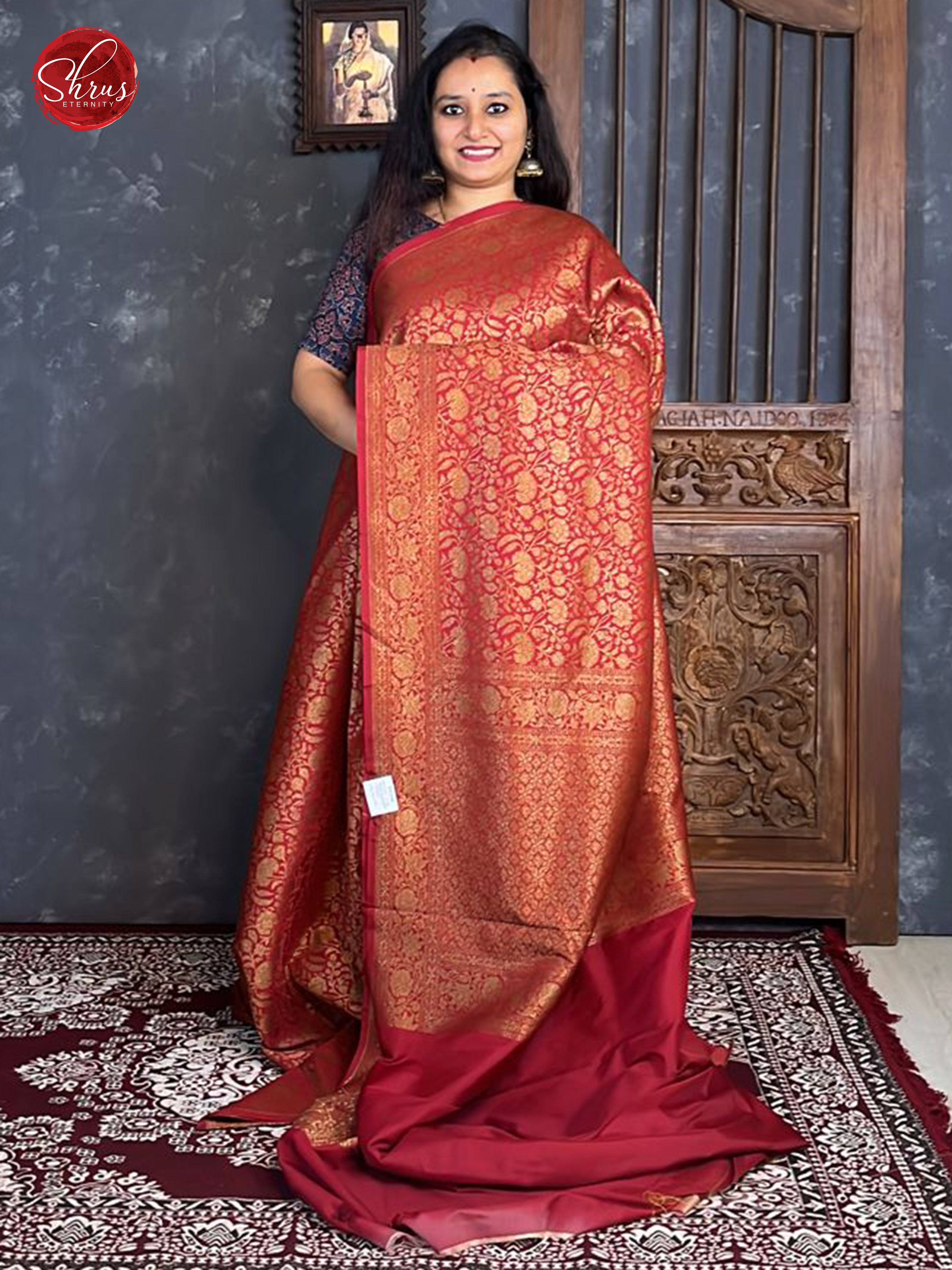 Red (Single Tone)- Semi Banarasi with zari woven floral nestling brocade on the body & Zari Border