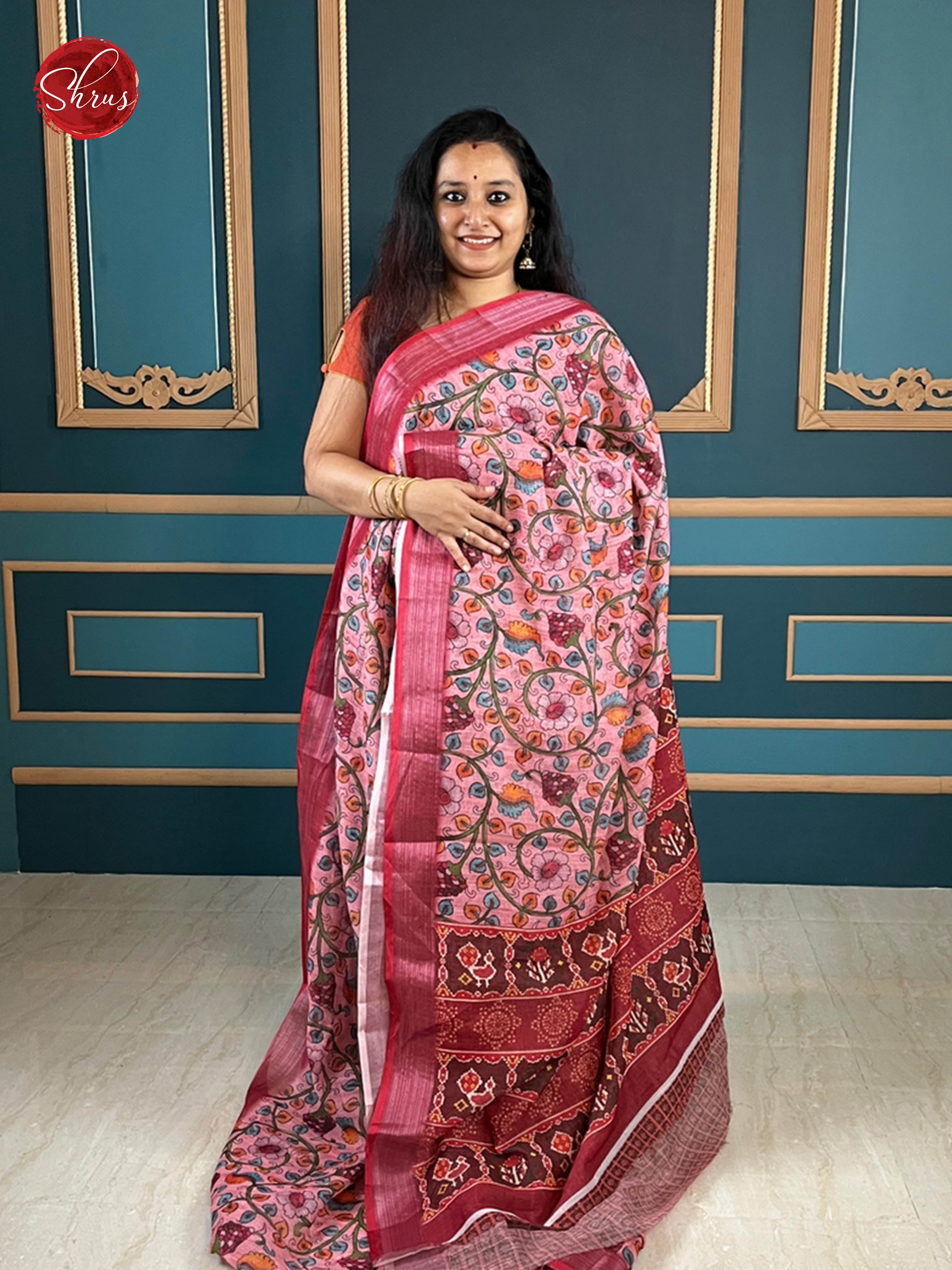 Beautiful Pink Art Linen saree with floral print on the Body & Bounded with self zari border adds charms The self pallu & blouse with zari border lends Complement