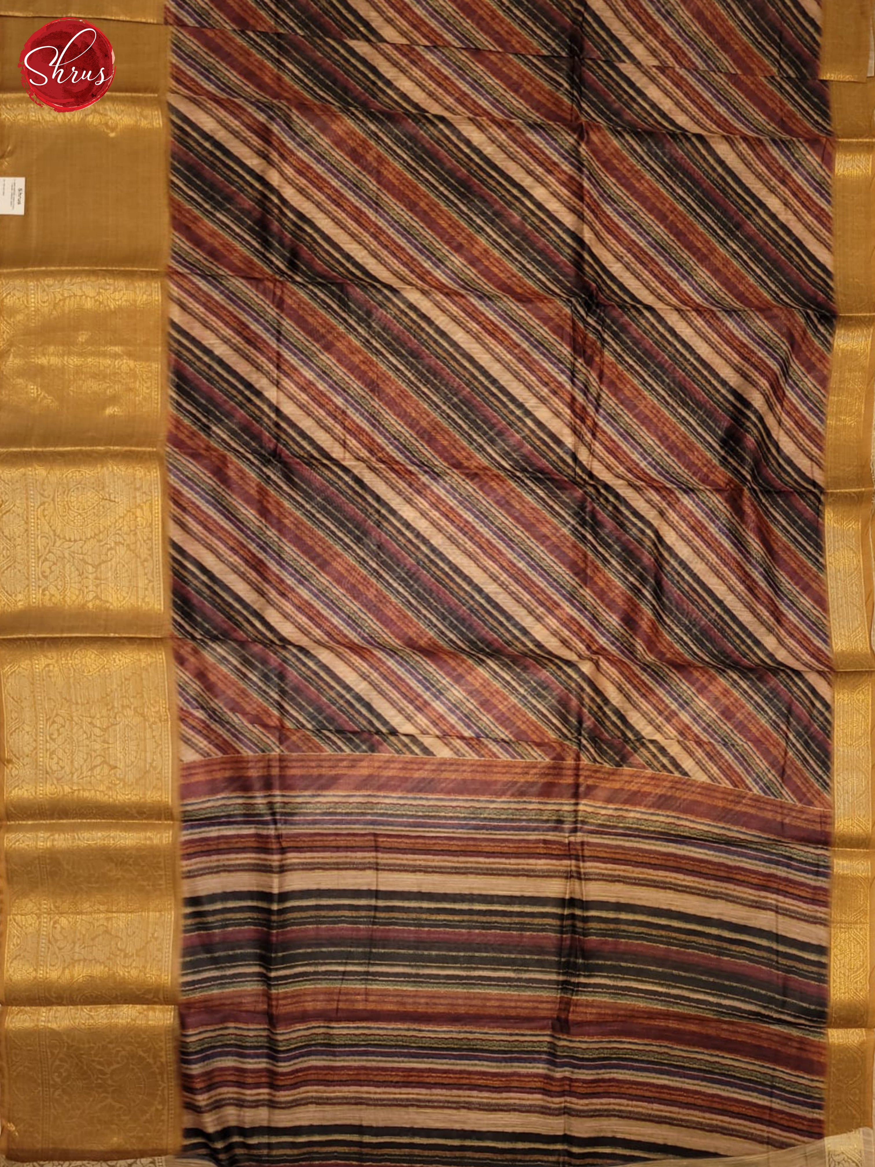 Very pretty MAroon Art linen saree enchants with diagonal stripes on the body & bounded with sandal Zari border .The self Printed Pallu & paired with printed blouse with zari border completes the ensemble