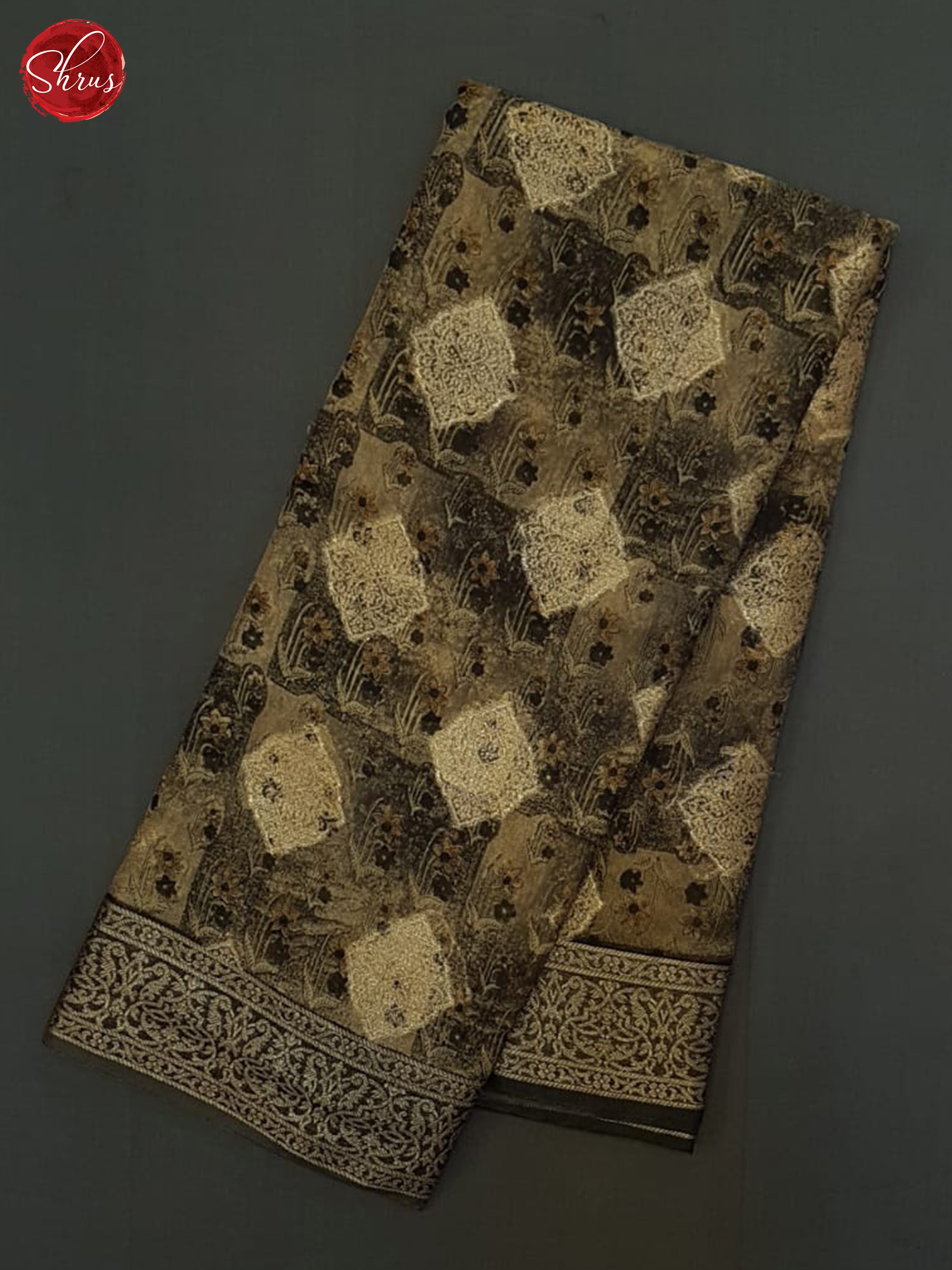 Pretty Greenish Brown Chanderi saree enchants with floral print on the body .The rich self zari woven Border & art printed Pallu adds elegance . Attached with zari brocade self blouse with zari border completes The ensemble