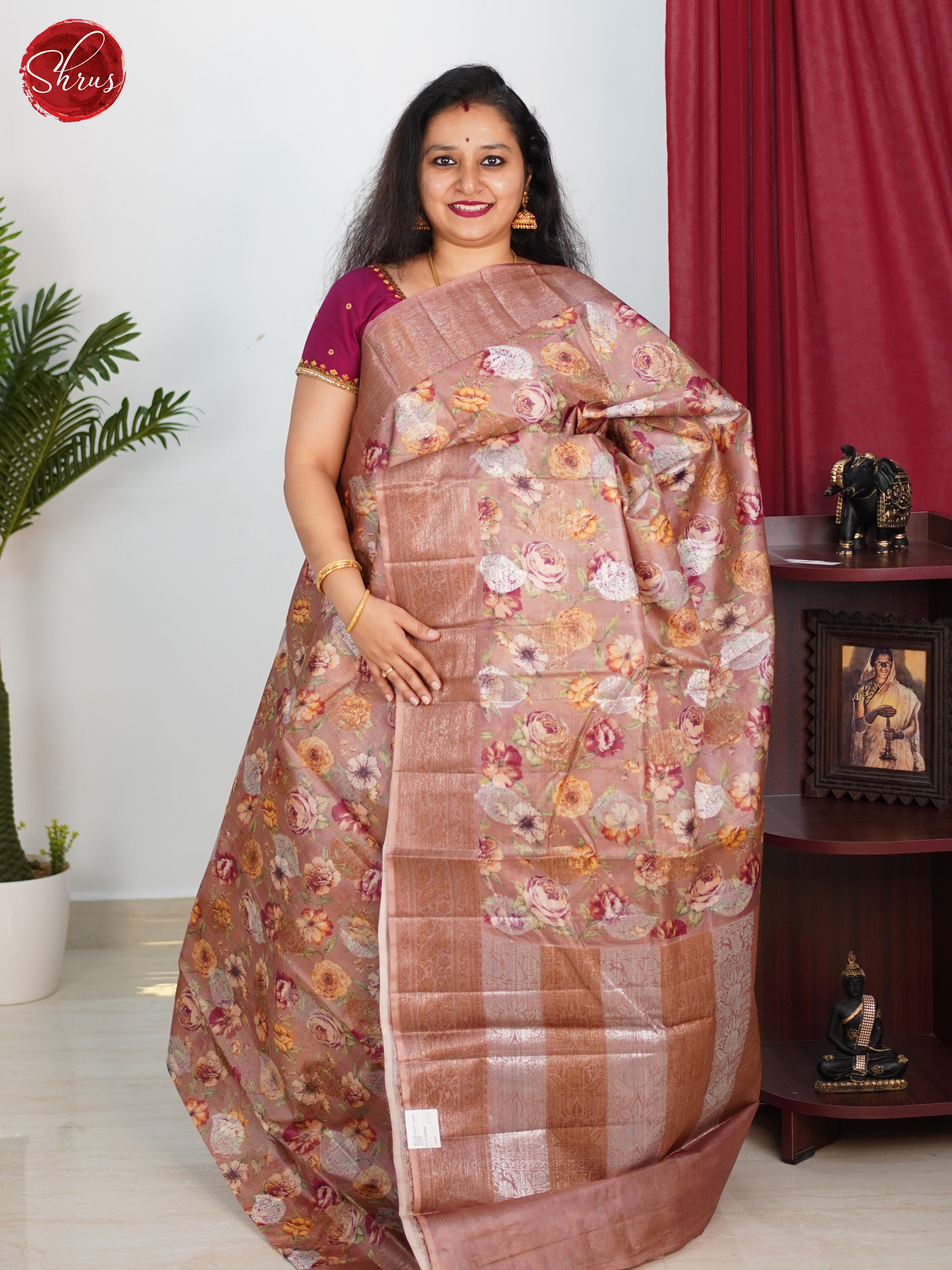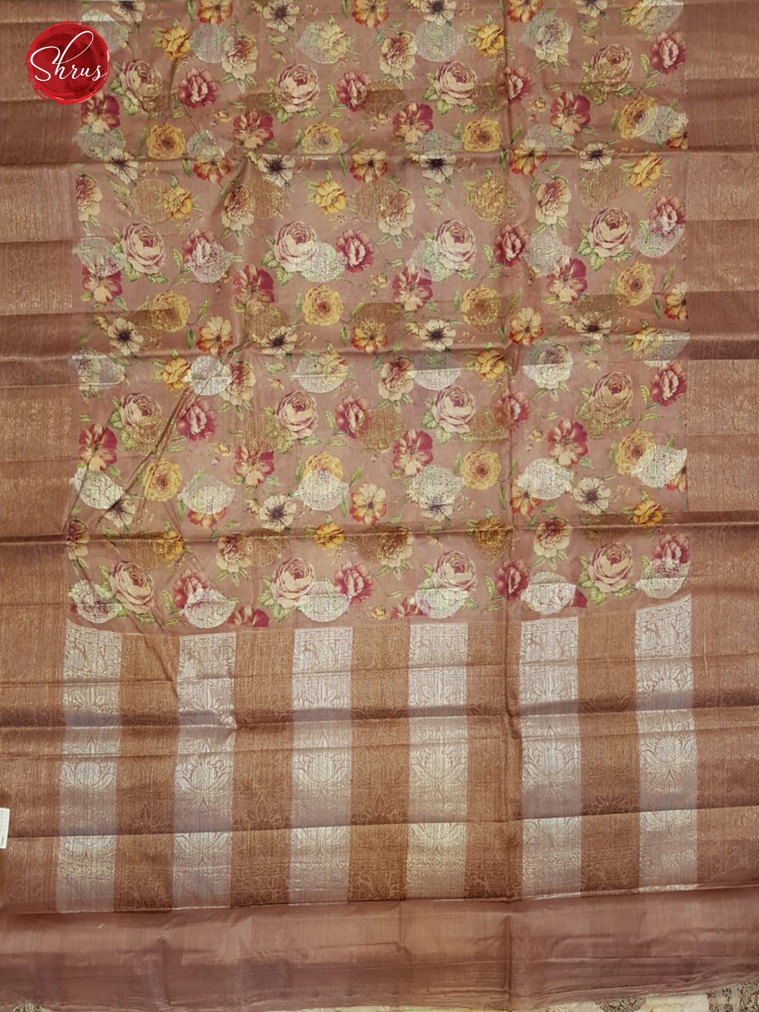 Pretty Brown Tussar Saree with floral print on the body & self zari woven border and self zari brocade pallu lends compliments. Comes with self zari brocade blouse gives a perfect finish