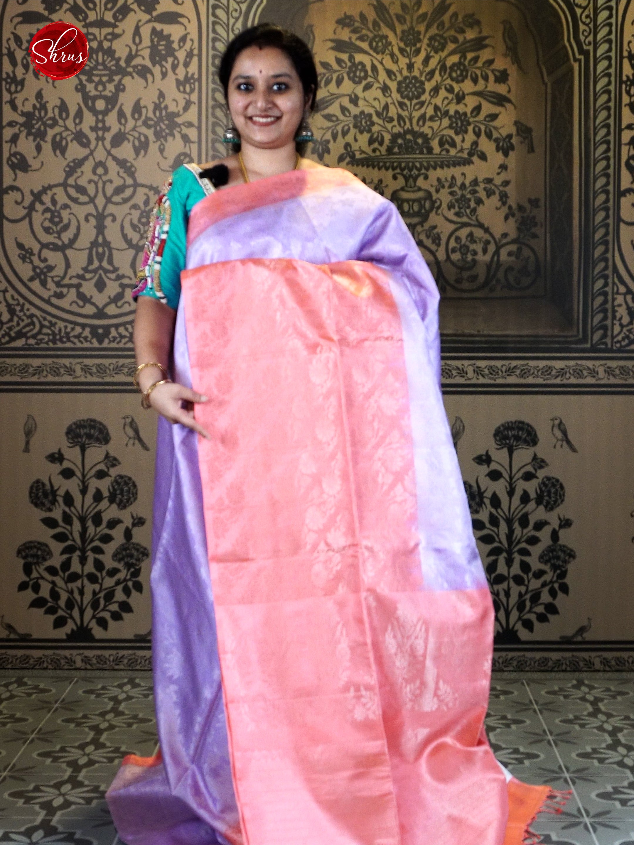 Lavender & Peach- Soft Silk with zari woven floral nestling brocade on the body & Contrast zari border