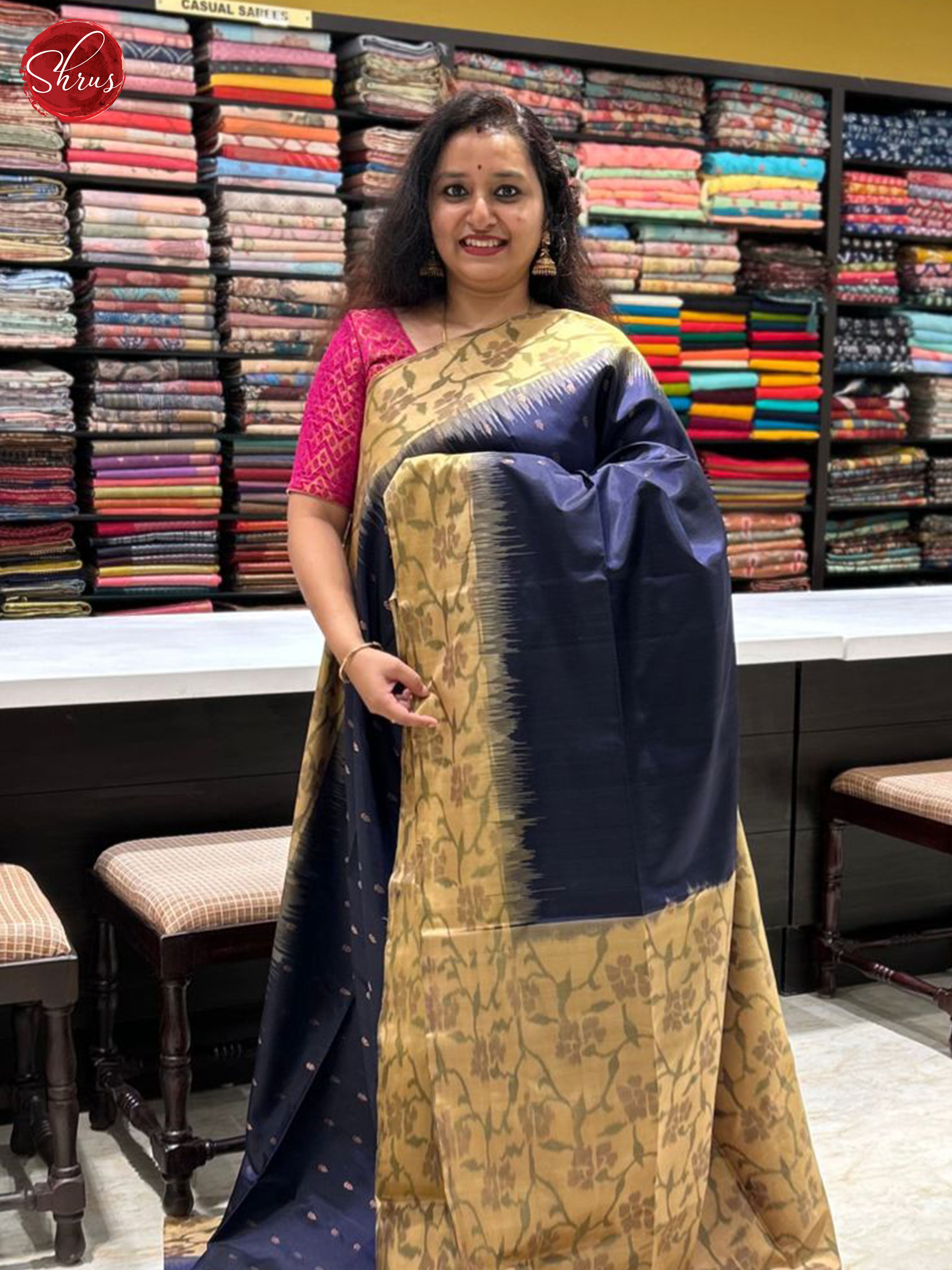 Navy blue and Brown - Soft silk with zari buttas on the body & contrast Border