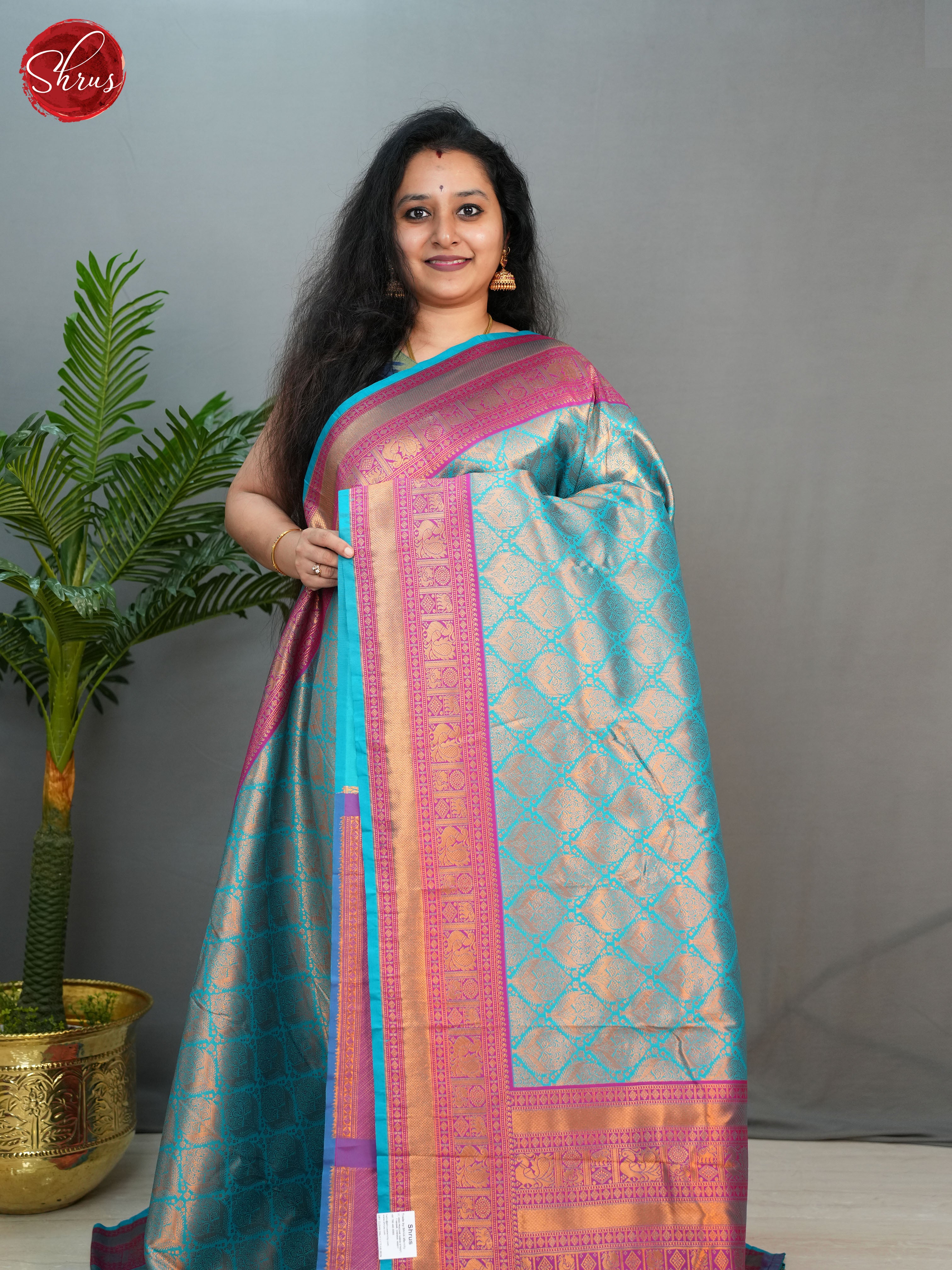 Blue & Purple -Semi Kanchipuram with Zari woven floral motifs on the body & Contrast Zari Border