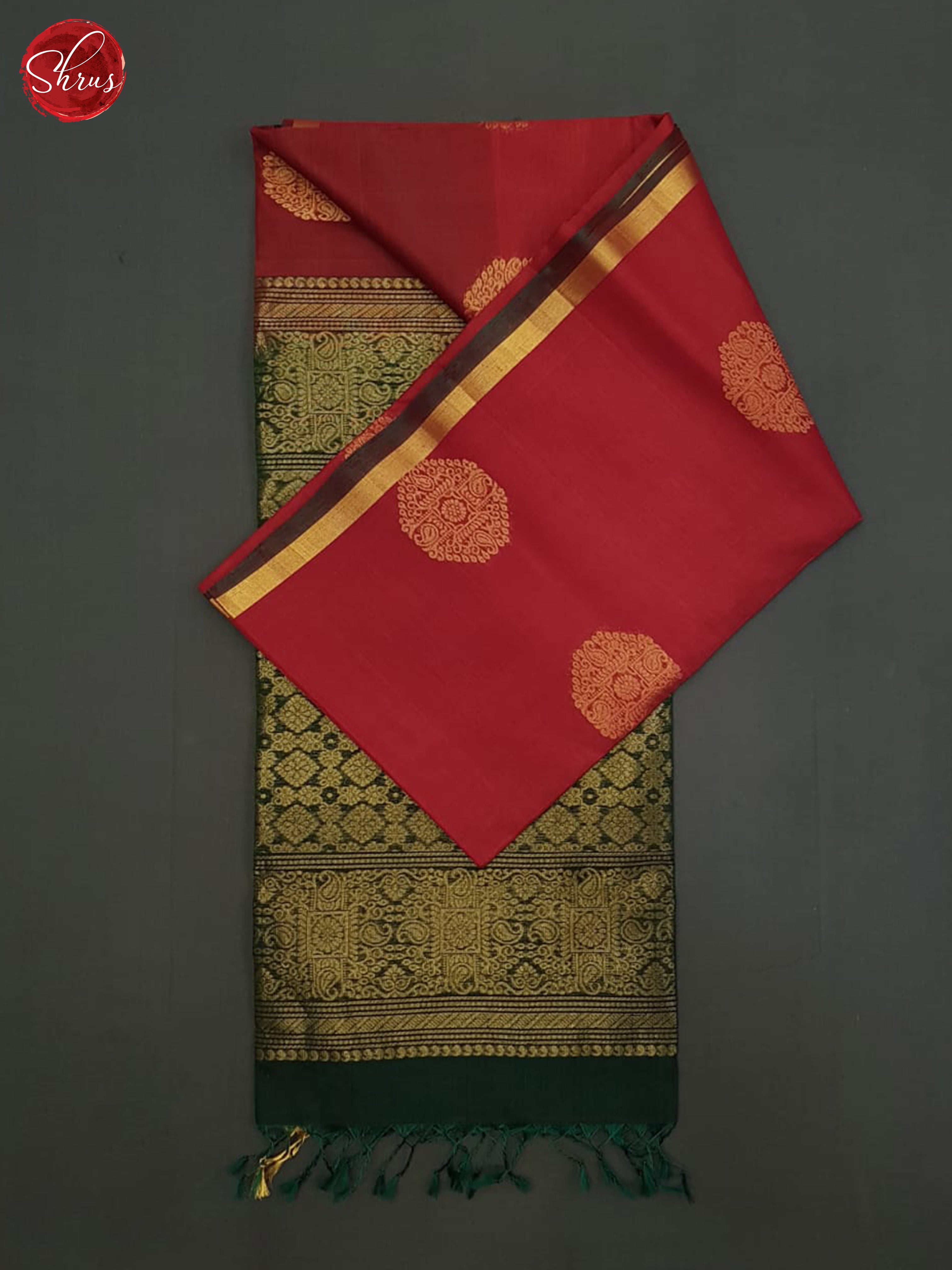Pretty Red Silk Cotton Saree enchants with zari woven floral motifs on the Body & bounded by a thin Zari Border . The splendid Green Contrast zari woven brocade Pallu And plain Blouse with thin zari Border gives a chic twist