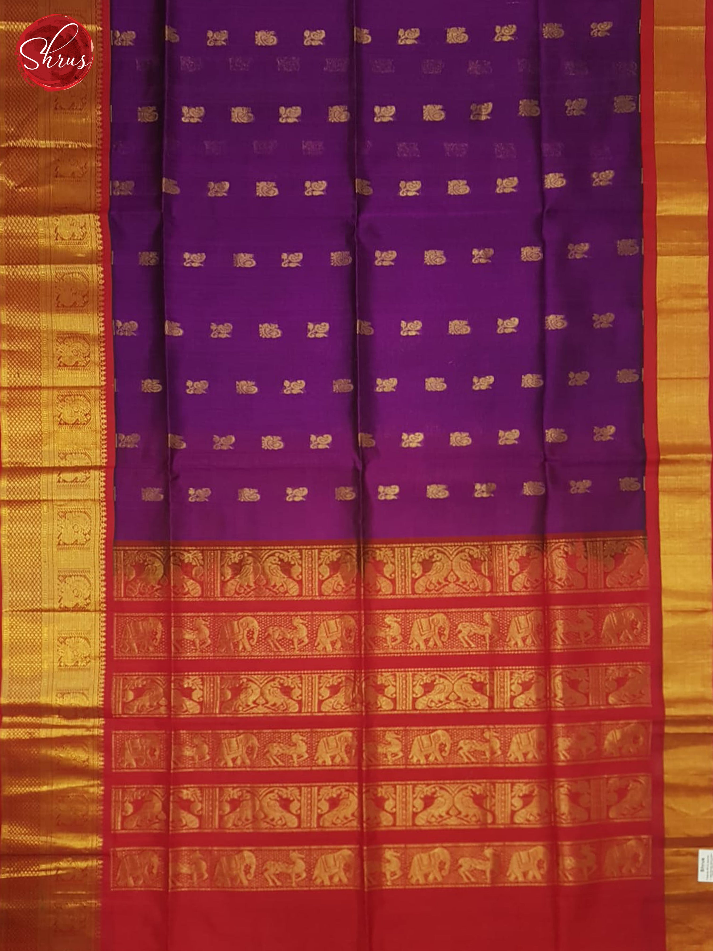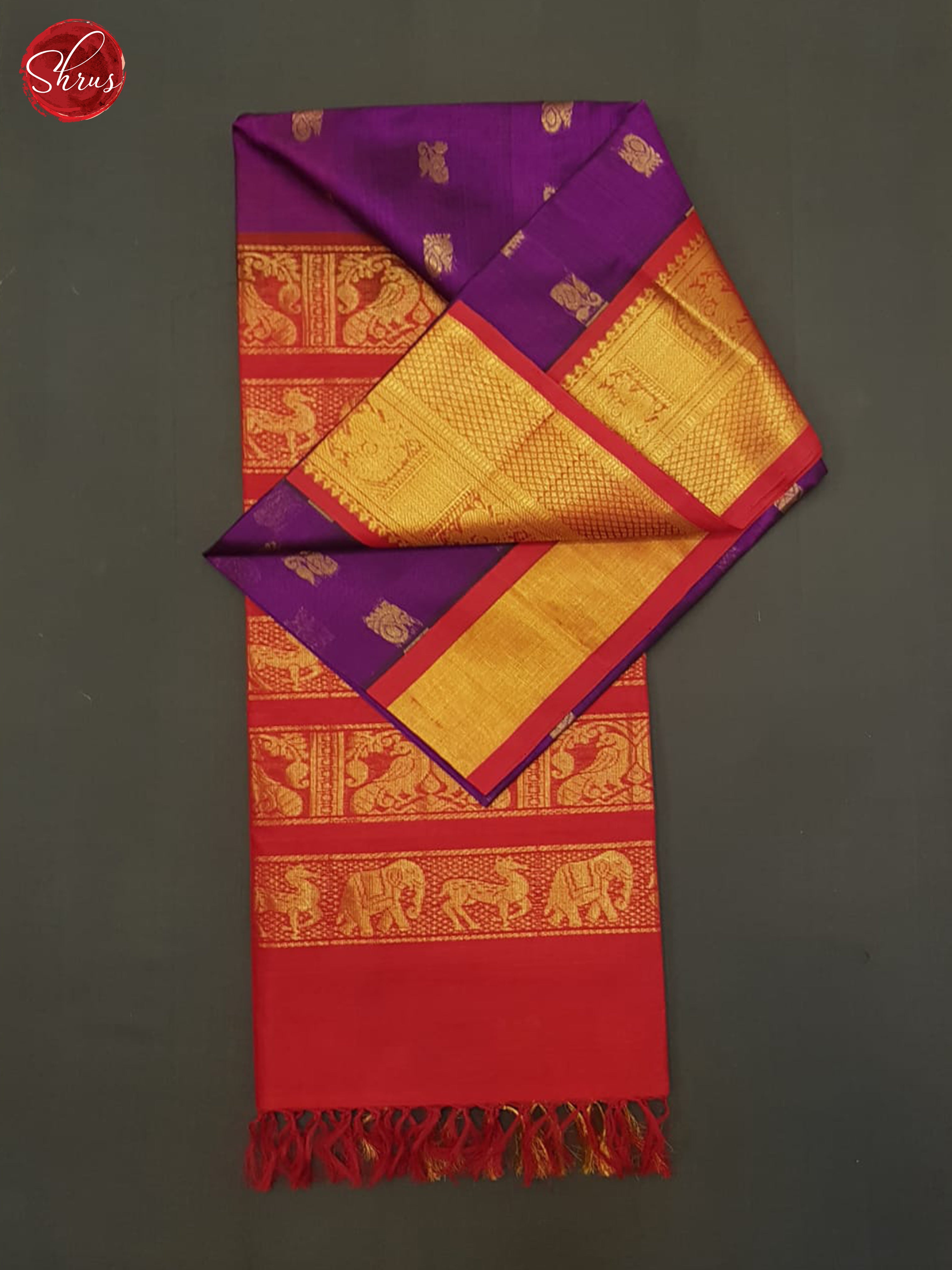 Beautifully Crafted Purple Silk Cotton Saree enchants with Zari woven peacock buttas on the Body & bounded by a Contrast Red Zari Border . The splendid Contrast Red zari woven brocade Pallu And plain Blouse with zari Border gives a chic twist