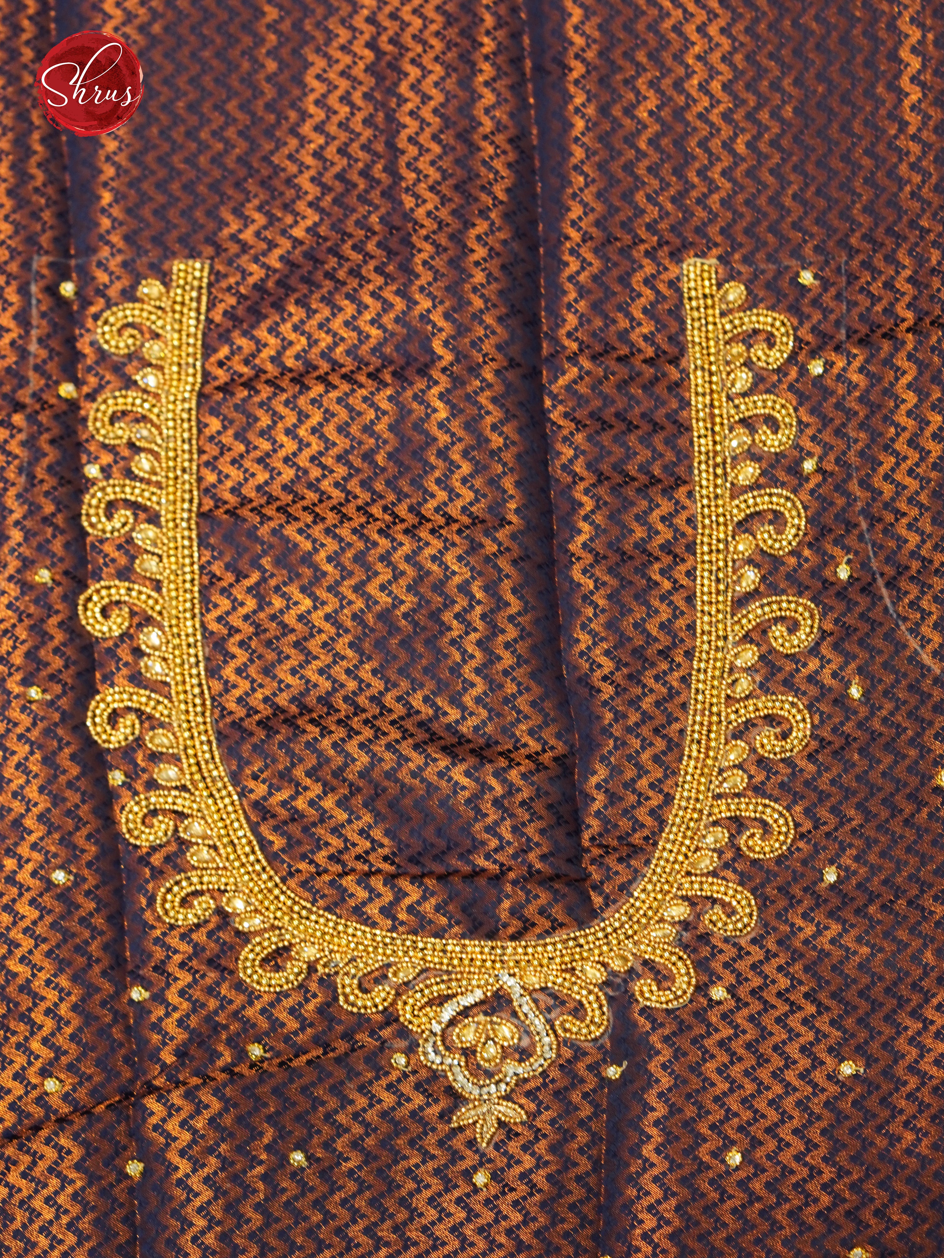 Pretty Blue Aari Blouse showcases intricate aari work, adorned with stunning stones, beads, and zari brocade designs. As an expertly crafted garment, it effortlessly blends traditional elements with top-quality fabric for a luxurious and durable result.