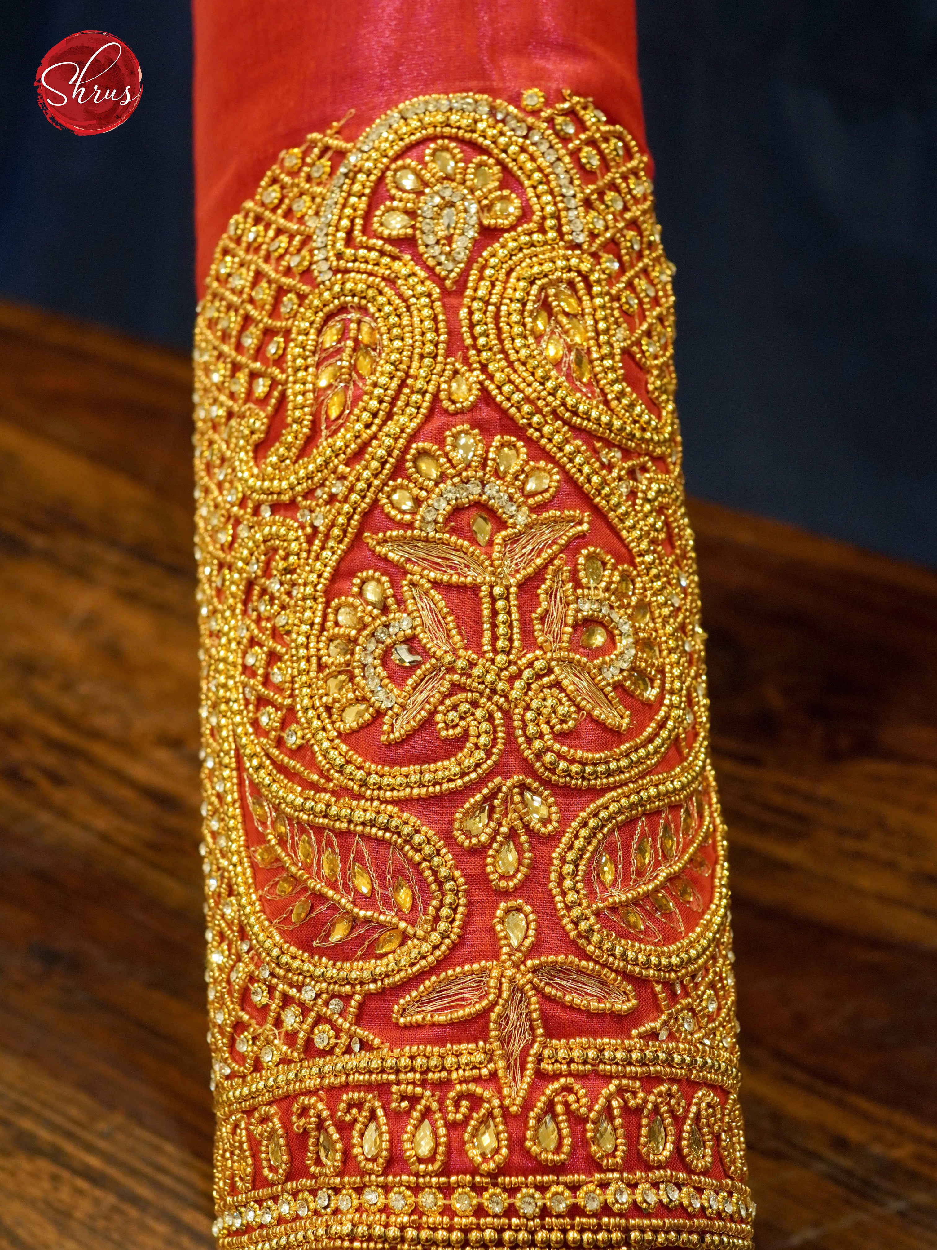 Elegant Red Aari Blouse is adorned with stunning beads designs. The garment effortlessly blends traditional elements with top-quality fabric for a luxurious and durable result, making it a must-have for any fashion expert.