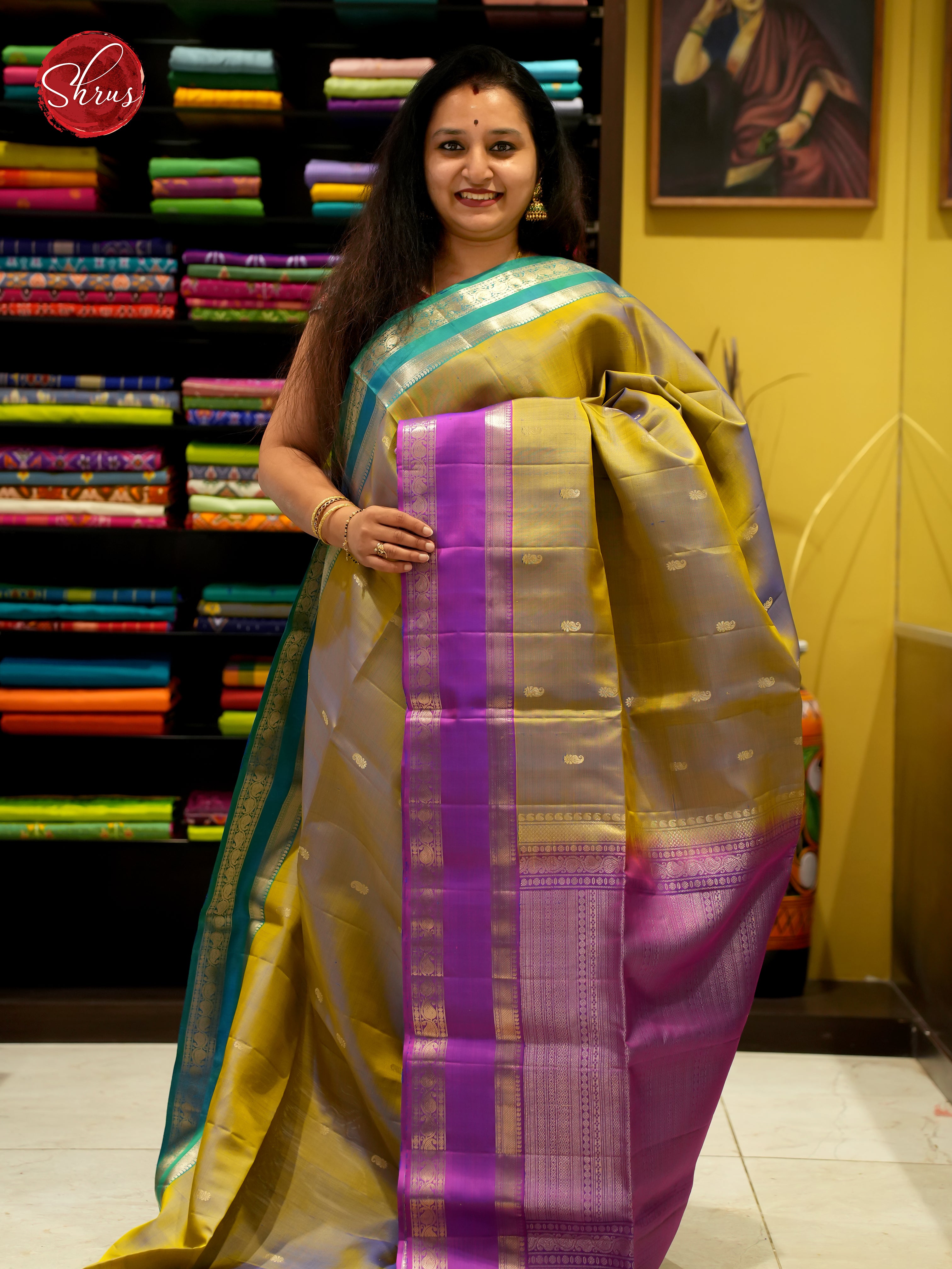 This exquisite Grey & Pink -Soft silk Saree enchants with zari buttas on the body, creating a delightful weave. The contrasting Pink zari border and zari brocade pallu add a beautiful touch, while the plain pink blouse with border completes the look.