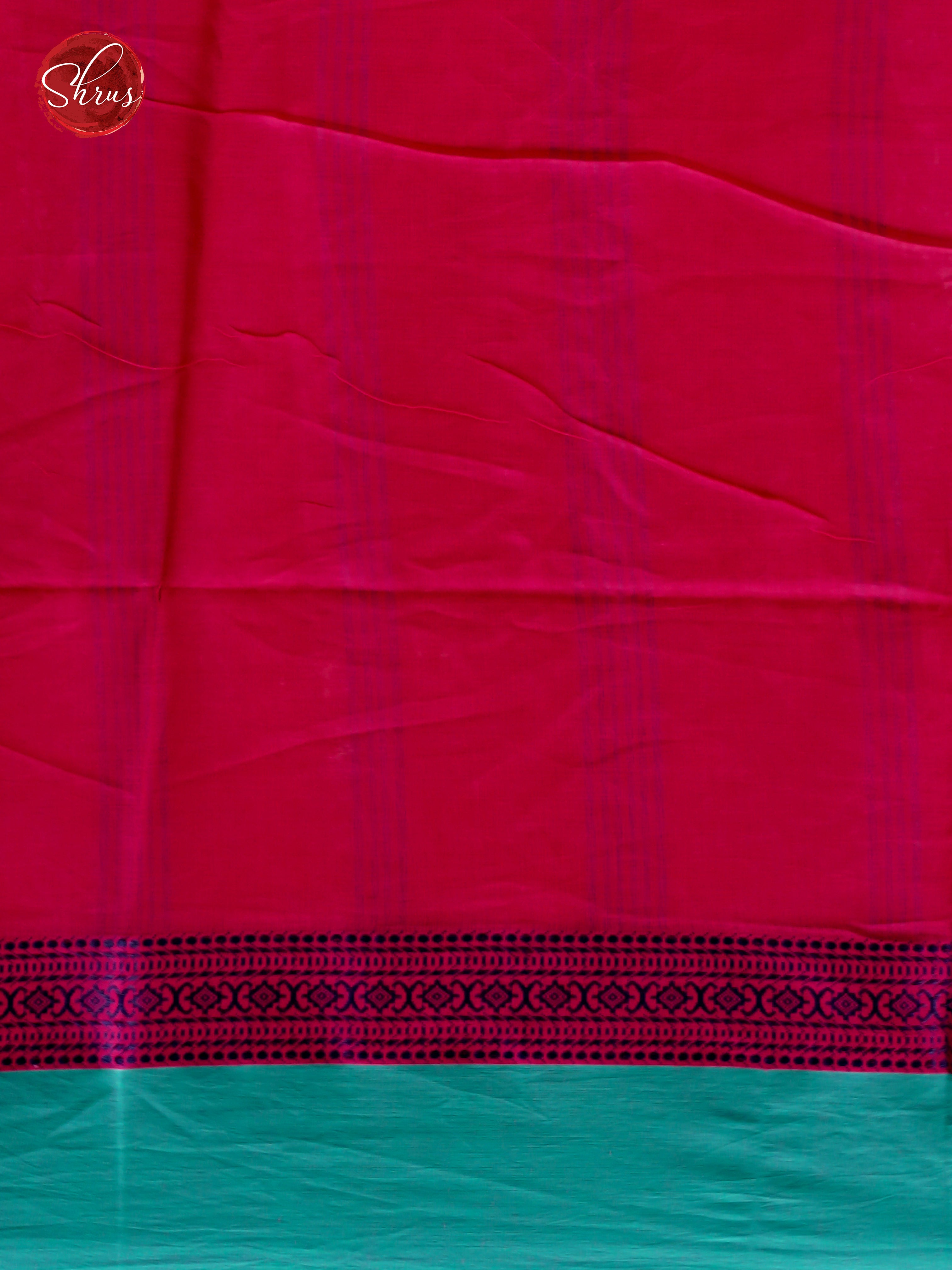 Elegant Reddish Pink Bengal Cotton Saree features a charming plain body and is bordered with a vibrant Blue Border. Its sophisticated self pallu includes a Stripes design, and it is accompanied by a plain self Blouse with a border.