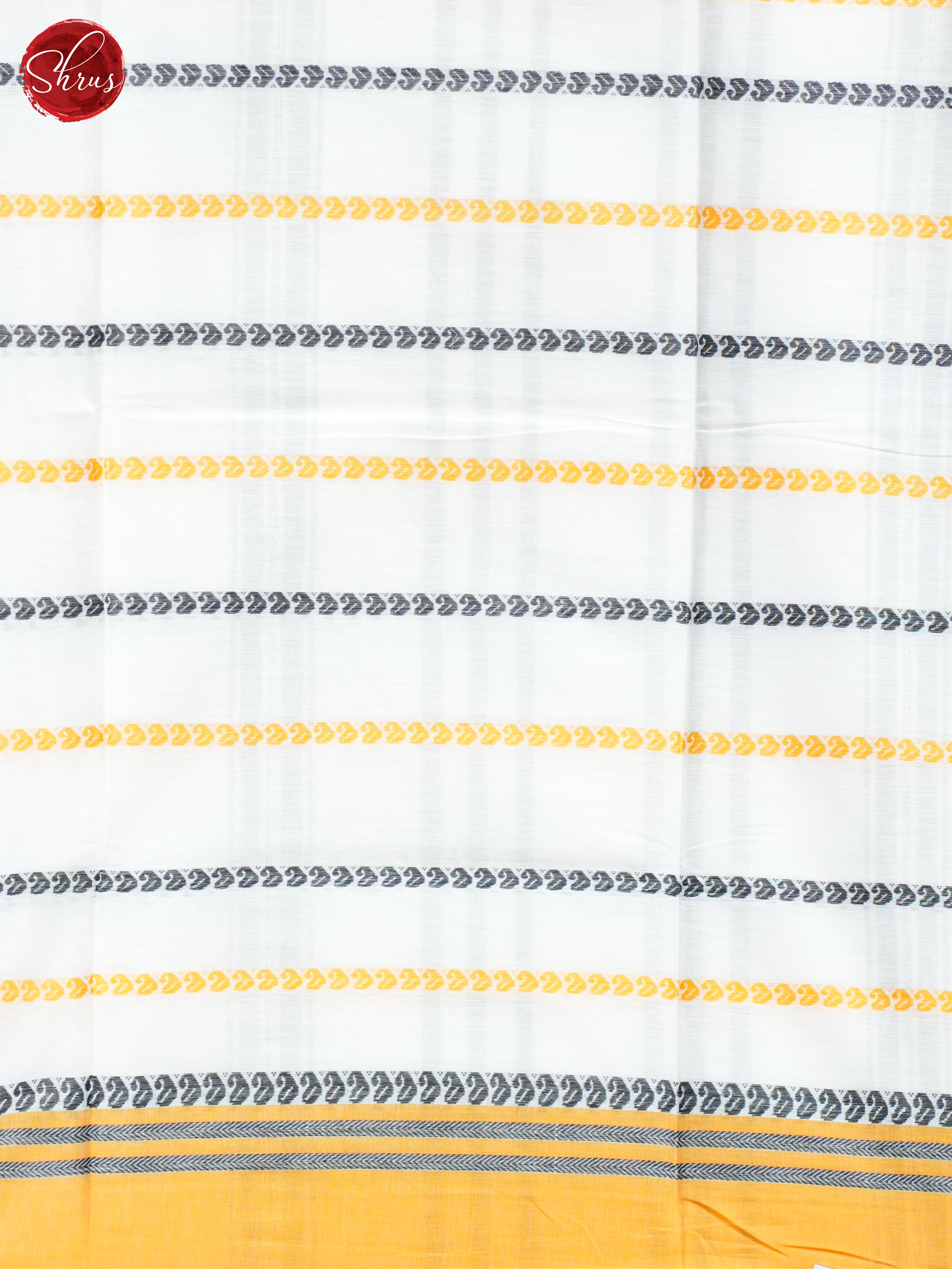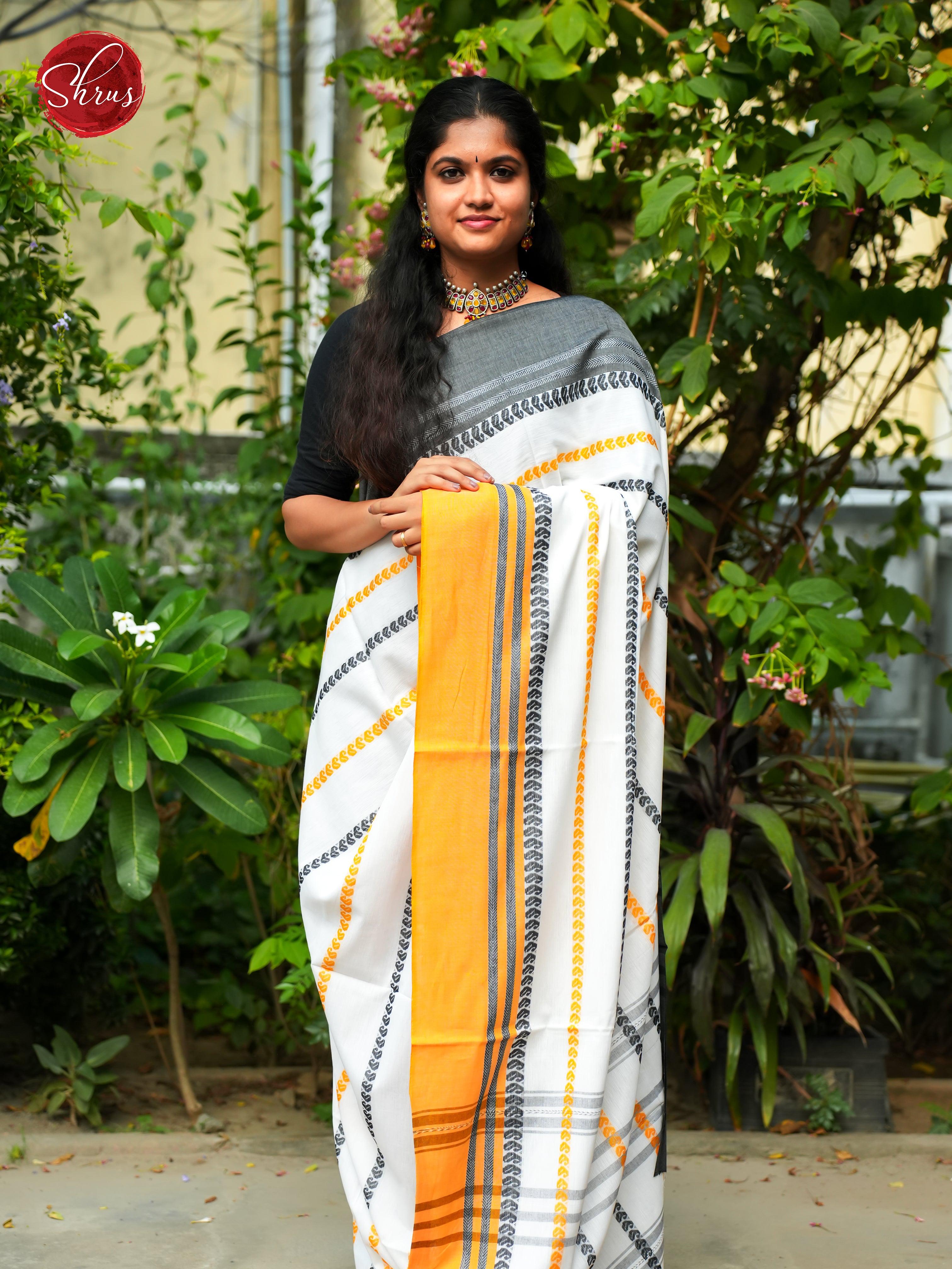 Elegant White & Yellow Mercerized Cotton saree features a chic hand-woven design with thread woven stripes on the body. The contrast Yellow, Grey border and pallu add a touch of elegance. It comes with a matching Self Blouse with Border.