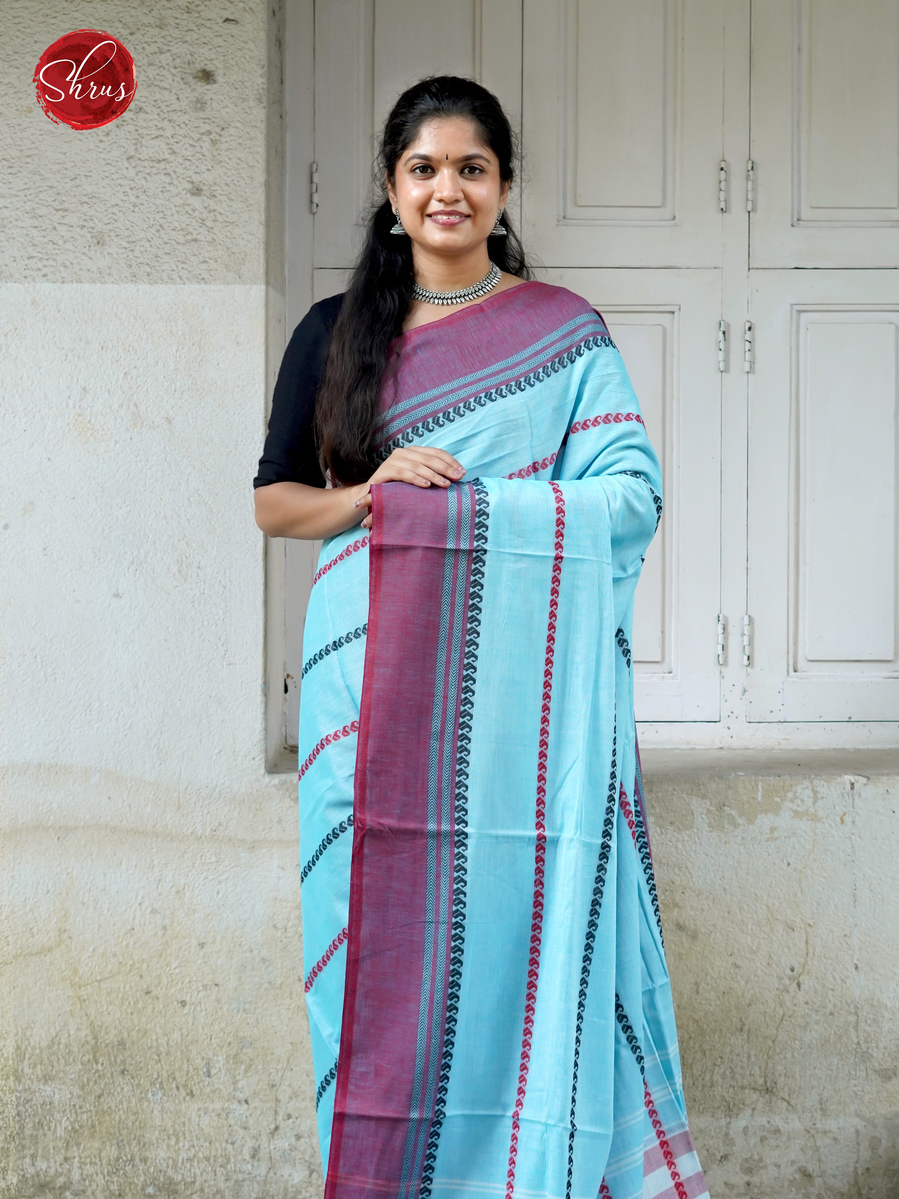 Pretty Blue & Maroon Mercerized Cotton saree features a chic hand-woven design with Thread woven stripes on the body. The contrast Maroon border and pallu add a touch of elegance.