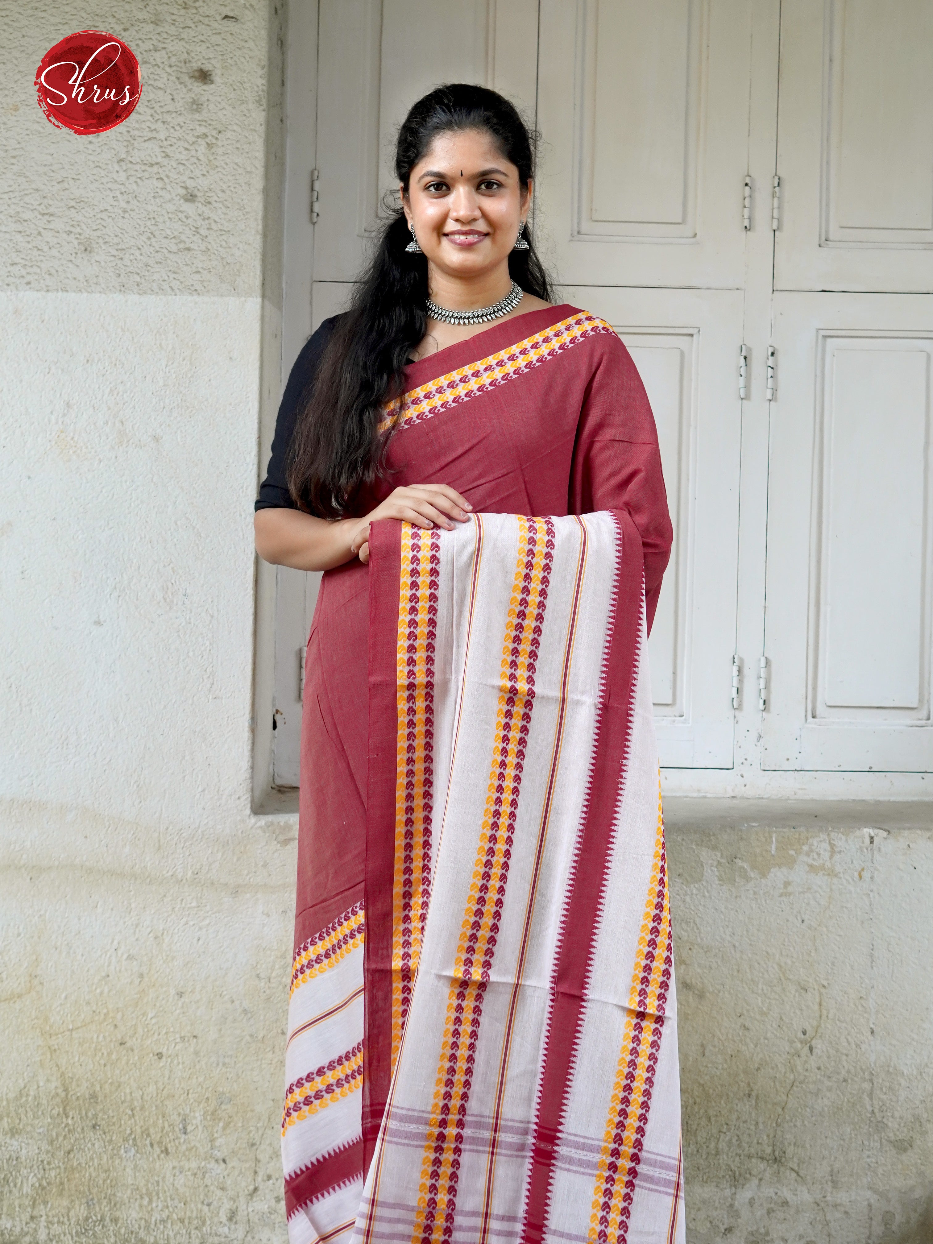 Beautiful Red Mercerized Cotton saree features a chic hand-woven design with plain body. The contrast White Thread woven border and pallu add a touch of elegance.