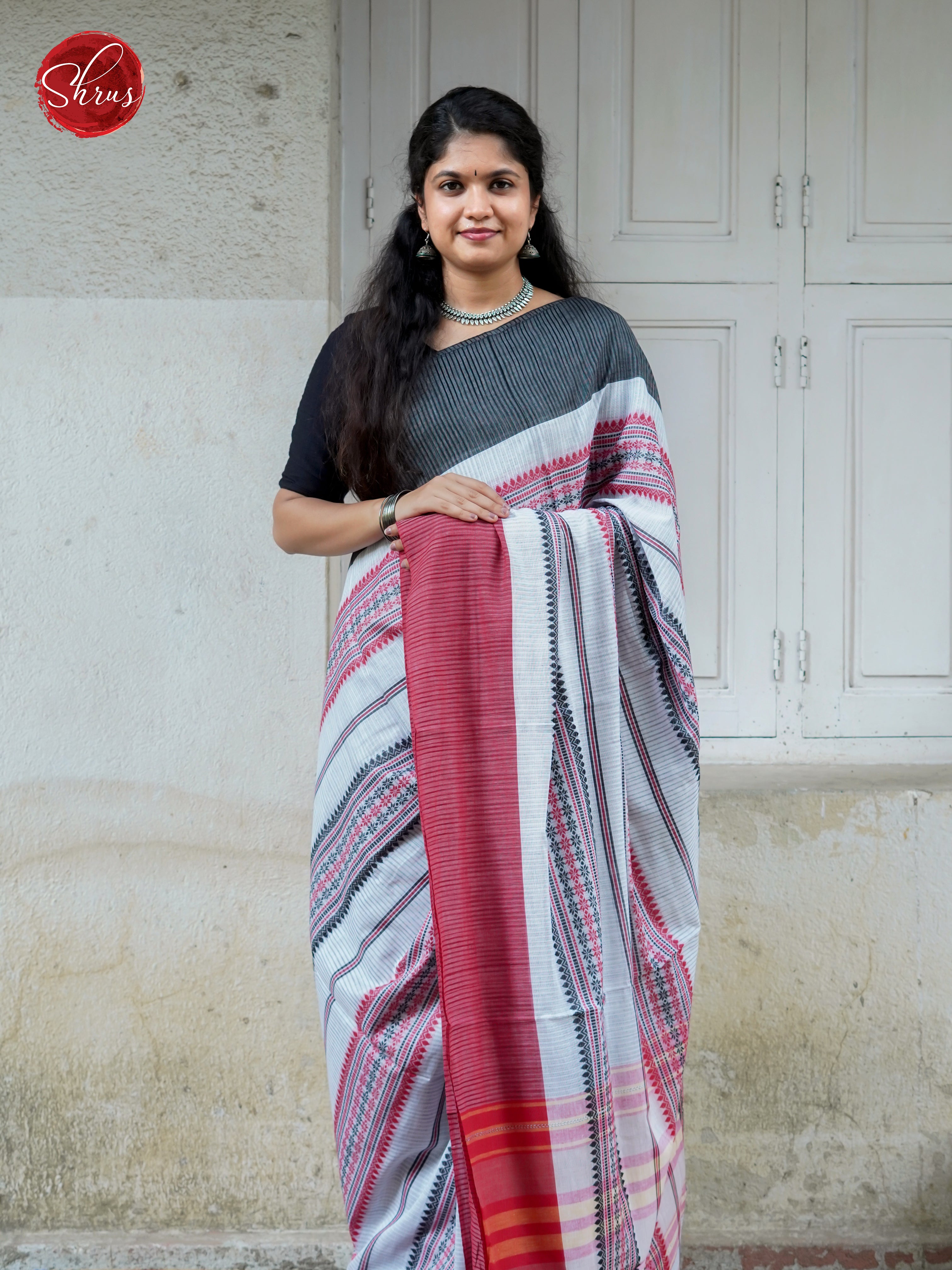 Pretty White & Red Mercerized Cotton saree features a chic hand-woven design with Thread woven stripes on the body. The contrast Red , Black border and pallu add a touch of elegance. It comes with a matching self Blouse with Border.