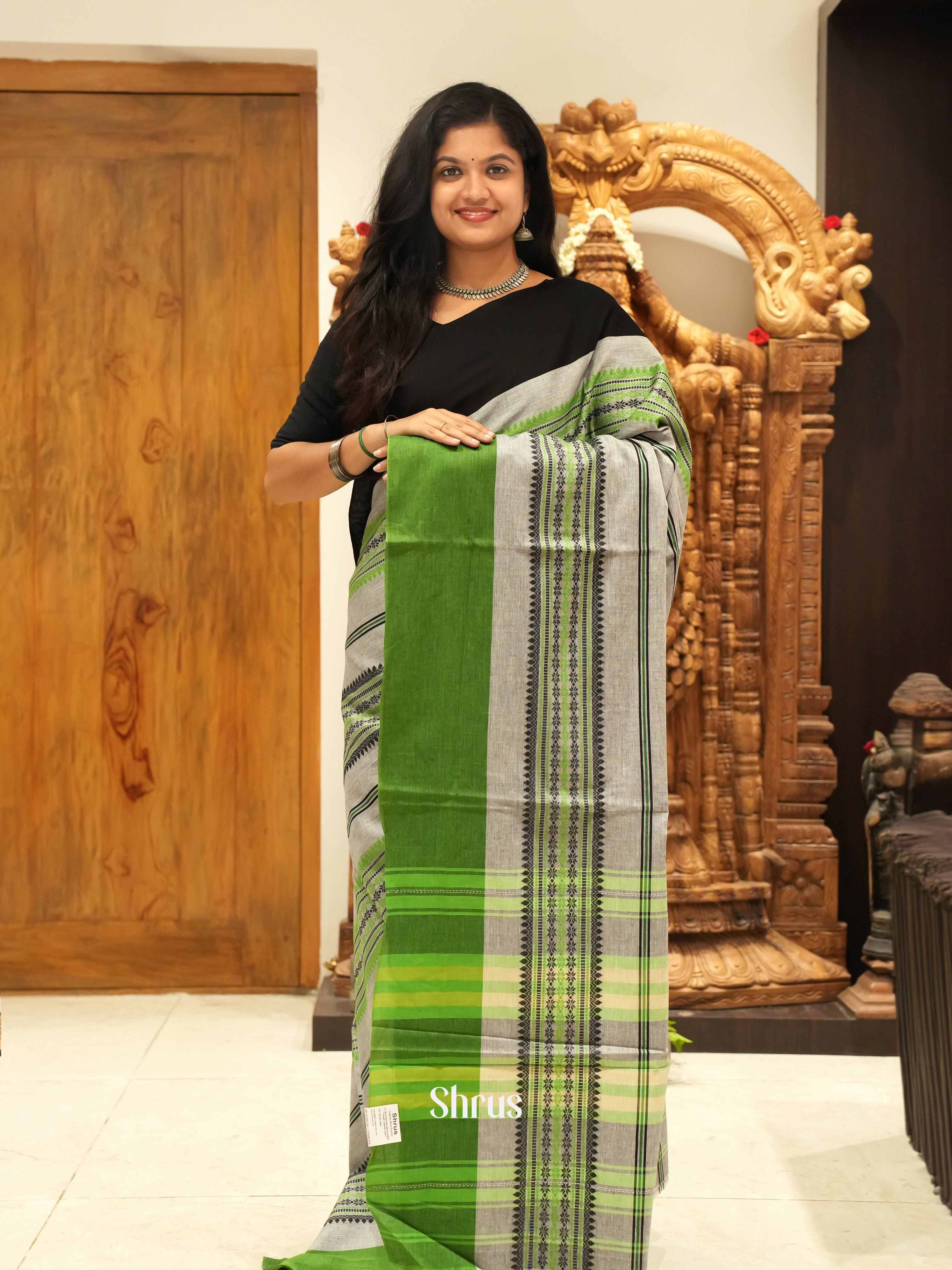 Grey & Green - Mercerized cotton saree