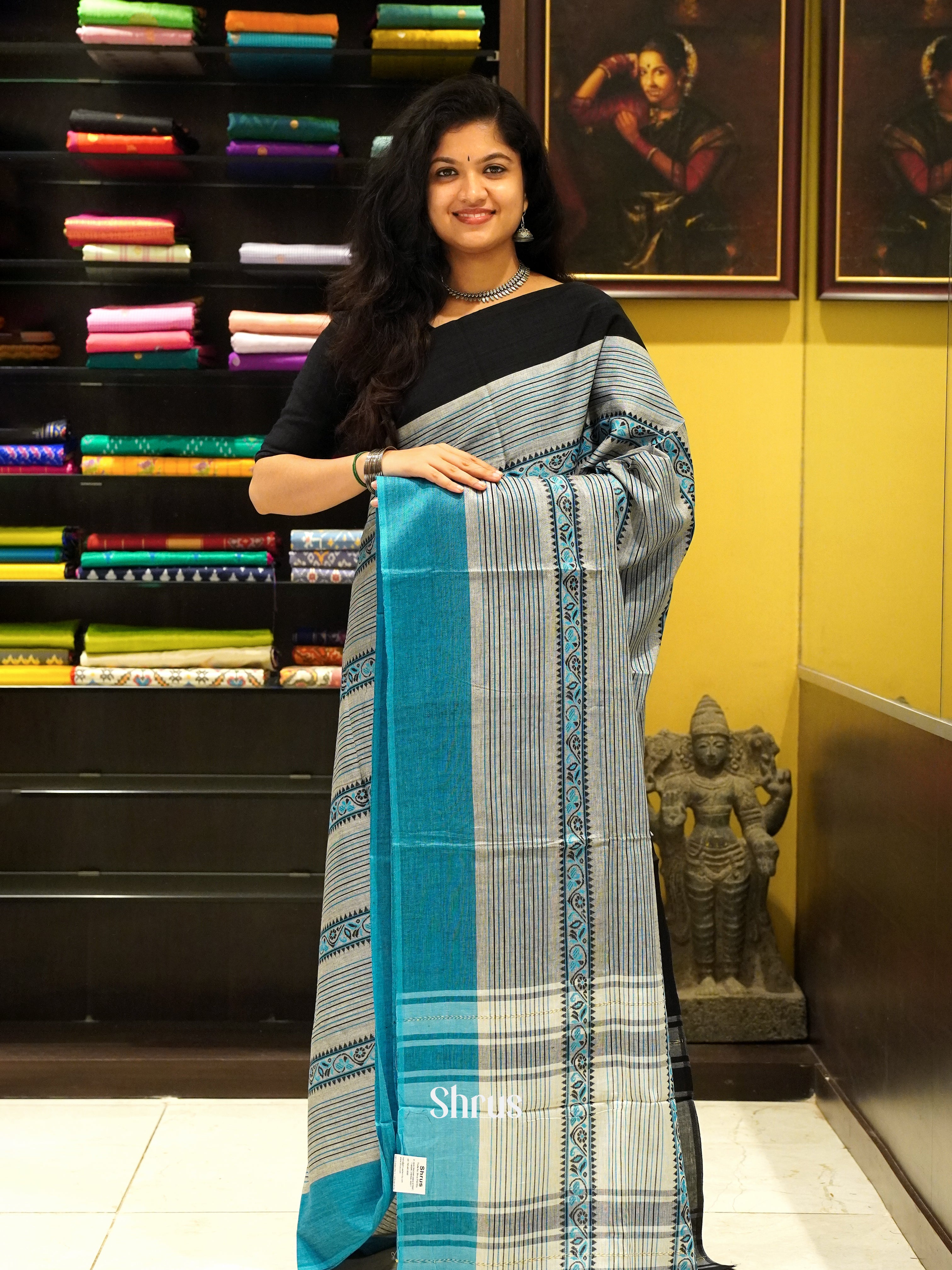 Grey & Blue - Mercerized cotton Saree