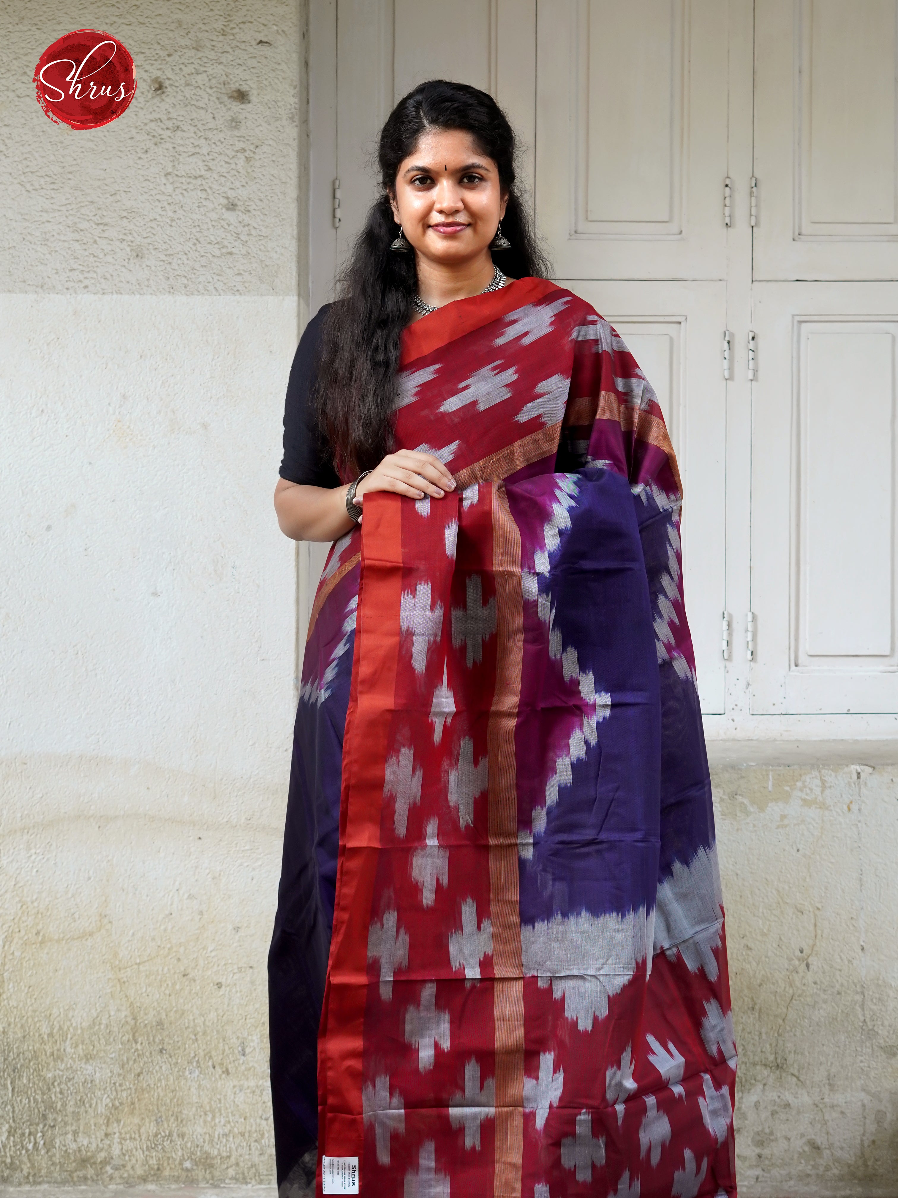 Pretty Blue & Red saree features Dhakhai cotton of exceptional quality and showcases a sophisticated Bhatik design on its body, border, and pallu, adding a touch of elegance to your outfit.