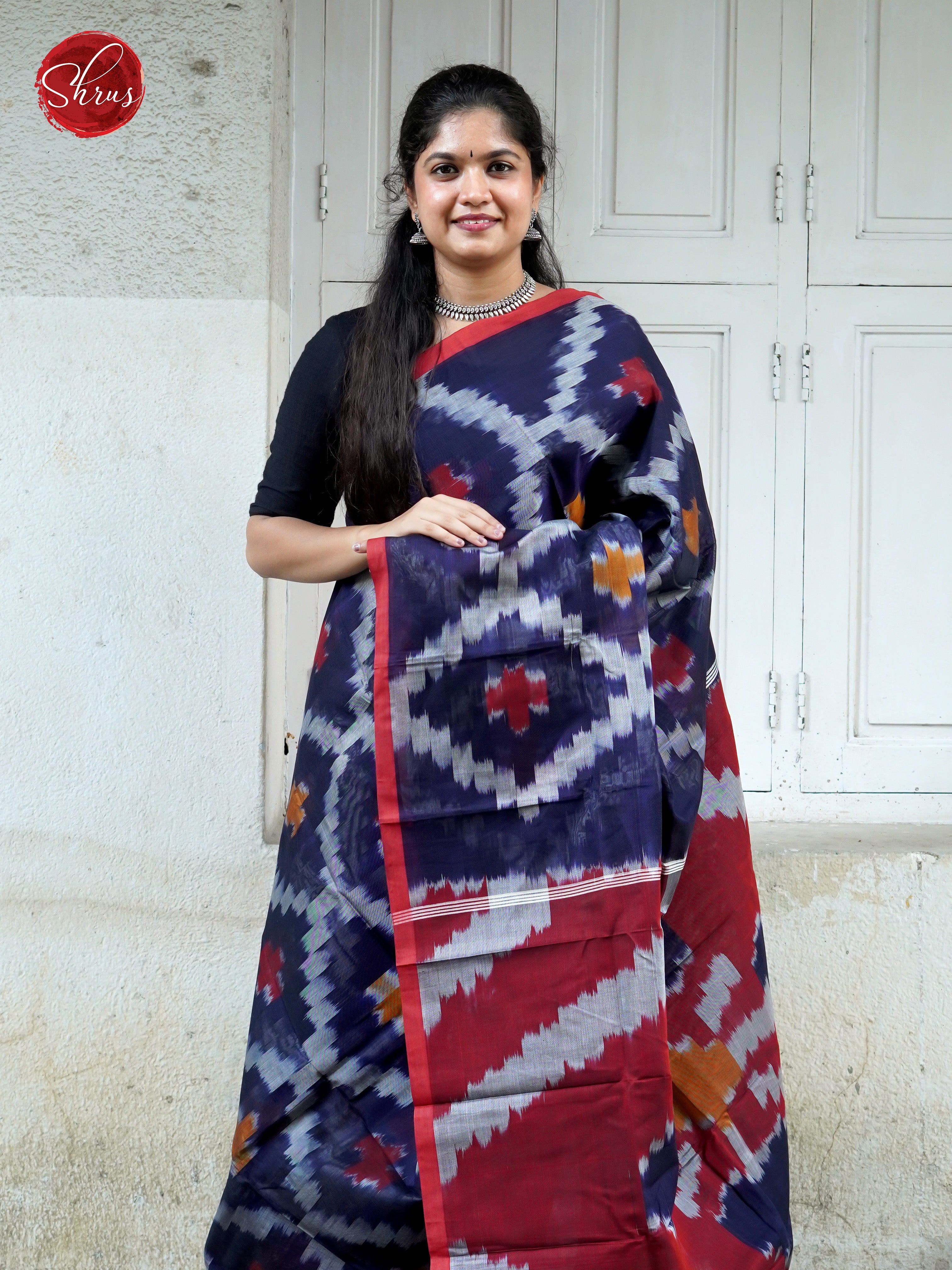 Elegant Blue & Red saree features Dhakhai cotton of exceptional quality and showcases a sophisticated Bhatik design on its body, border, and pallu, adding a touch of elegance to your outfit. Paired with plain Red Blouse with Border