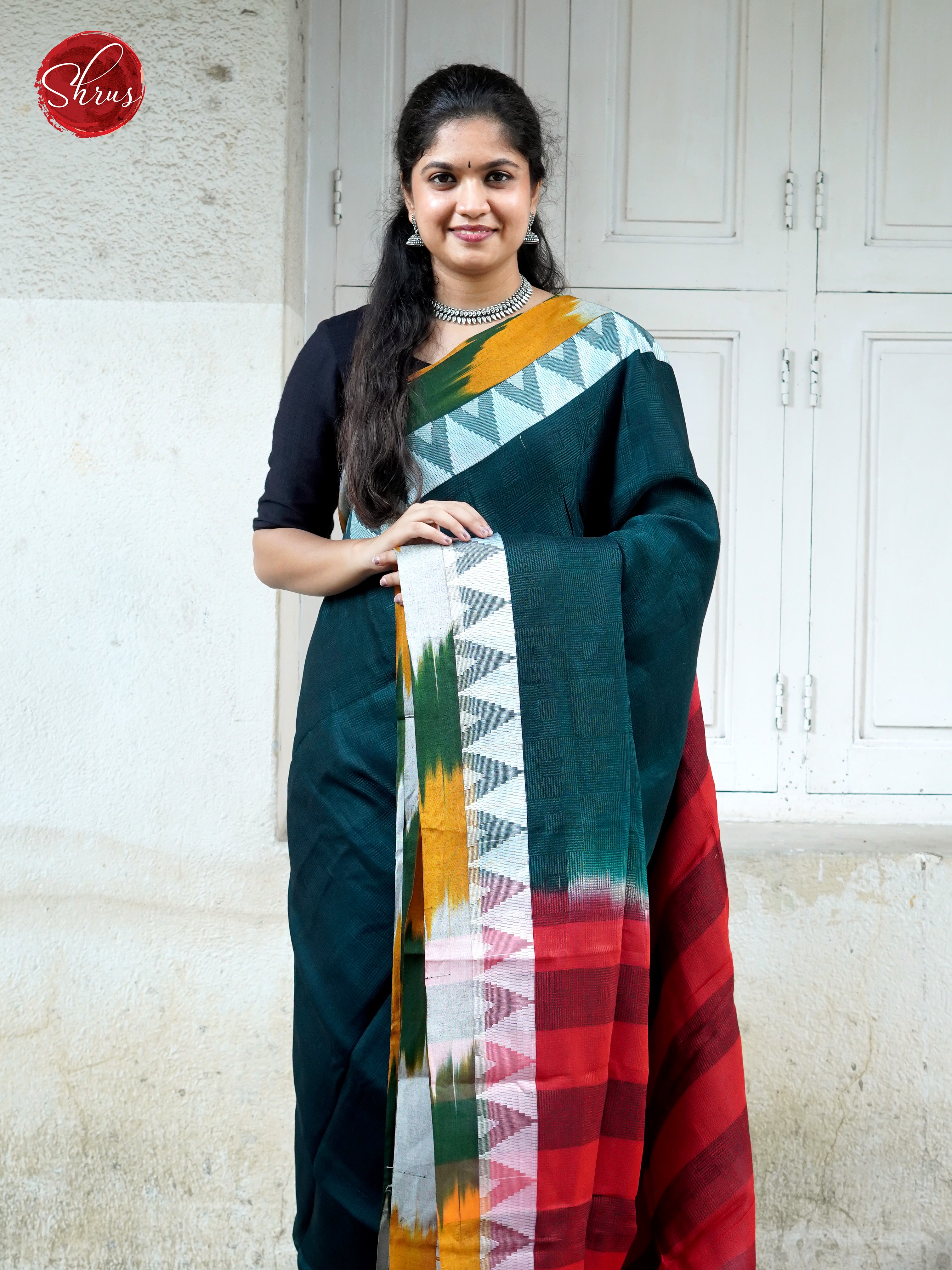 Pretty Dhakhai cotton saree in Peacock Green is both elegant and stylish, featuring a simple plain body and a contrasting border. The Red pallu adds sophistication, and the saree comes with a Red blouse with a border.