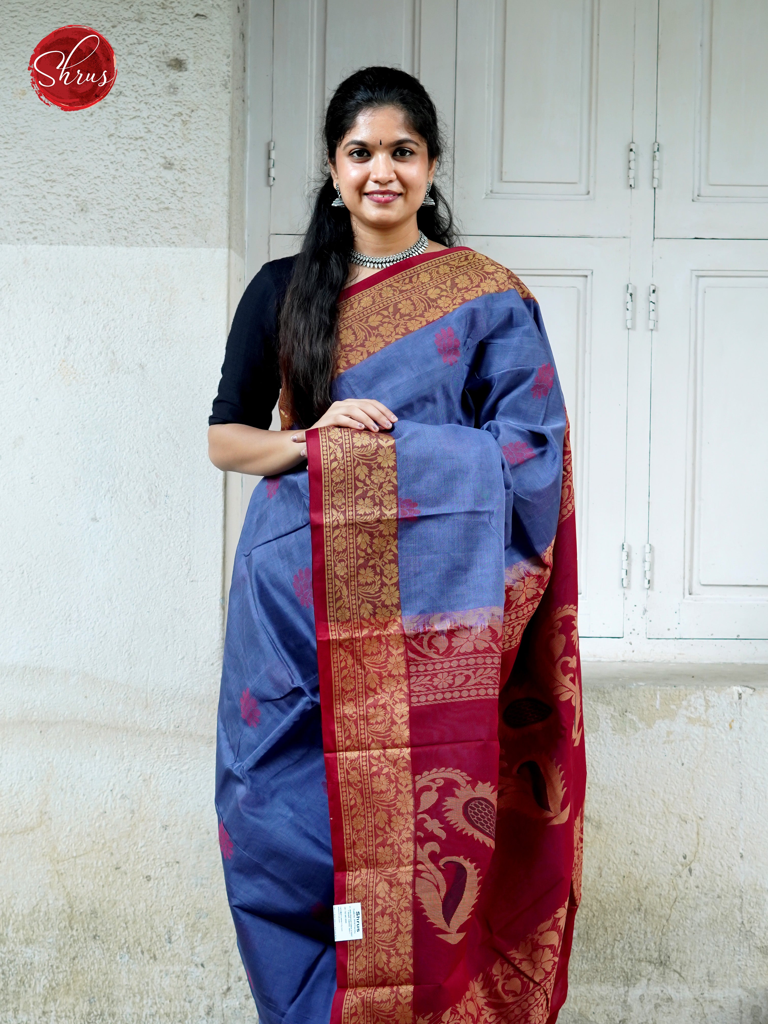 Pretty Blue Mercerized Cotton saree boasts a beautifully hand-woven design with thread woven buttas on the body. The Maroon zari border and pallu provide an elegant touch. It also includes a matching Maroon plain Blouse with Border.