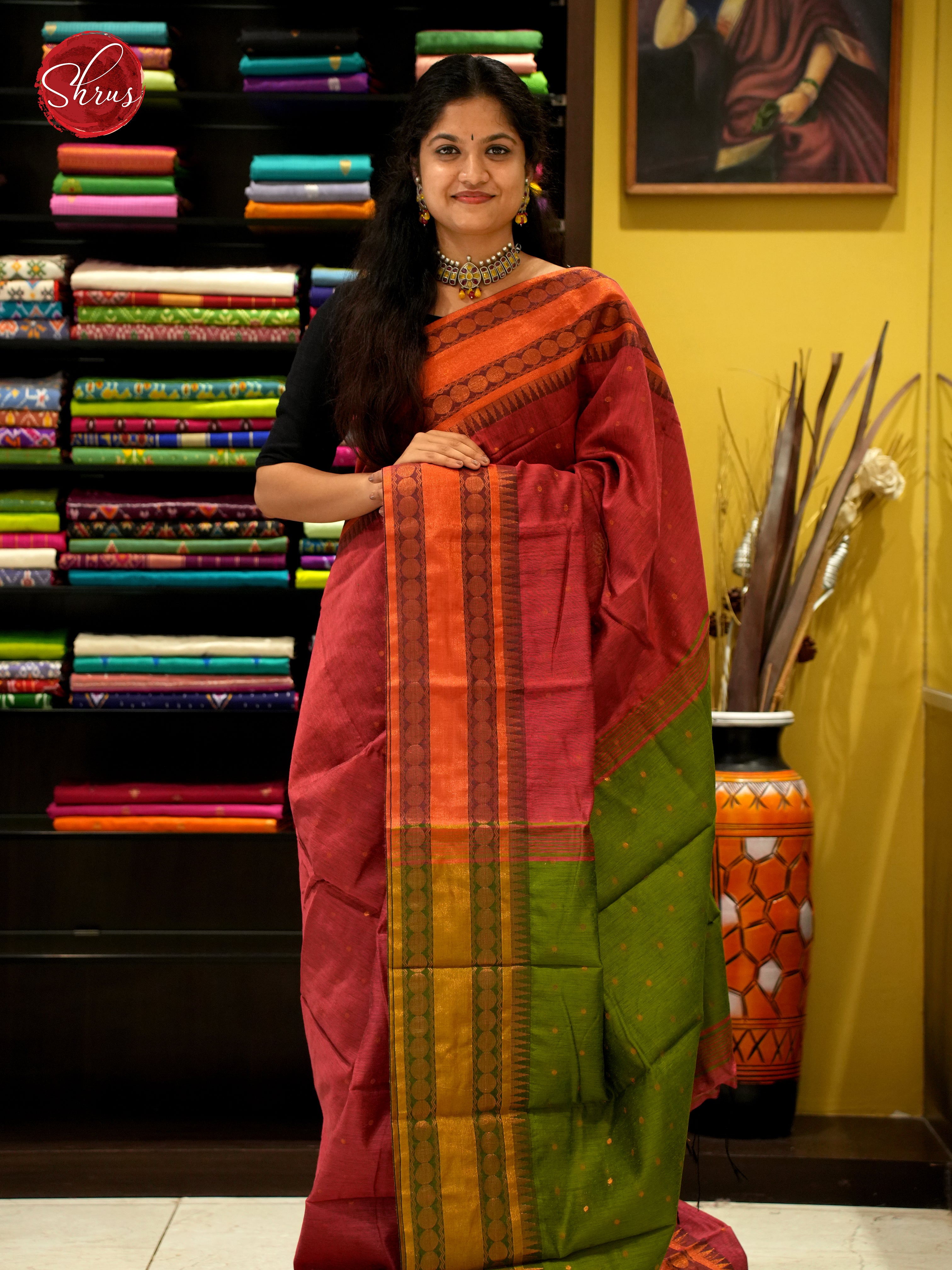 Brick & Green - Mercerized Cotton Saree