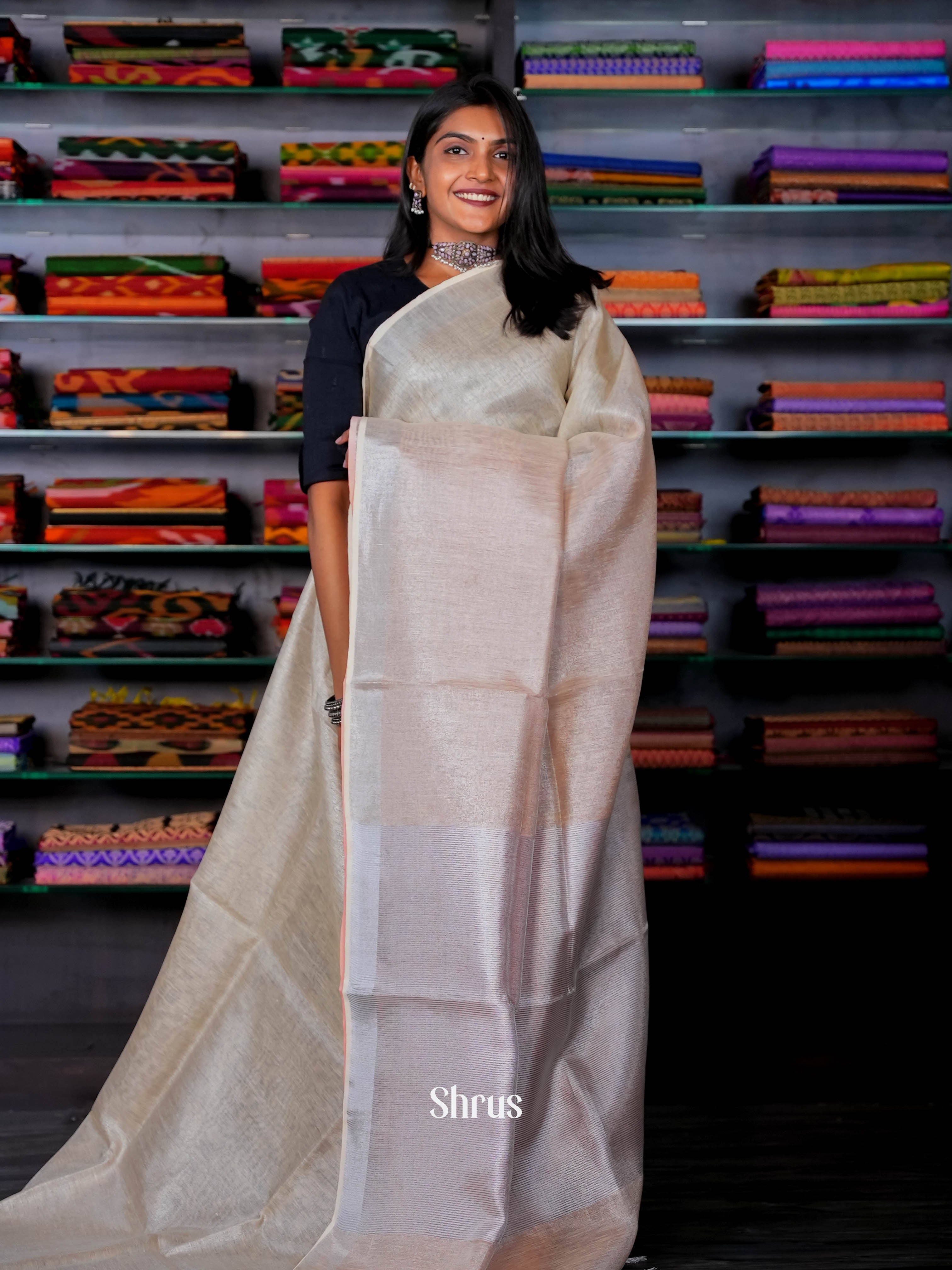 Charming Cream Linen saree with plain body that adds charm. The self zari border and pallu add to its beauty. It comes with a Pink plain blouse with a border to perfectly complement the design.
