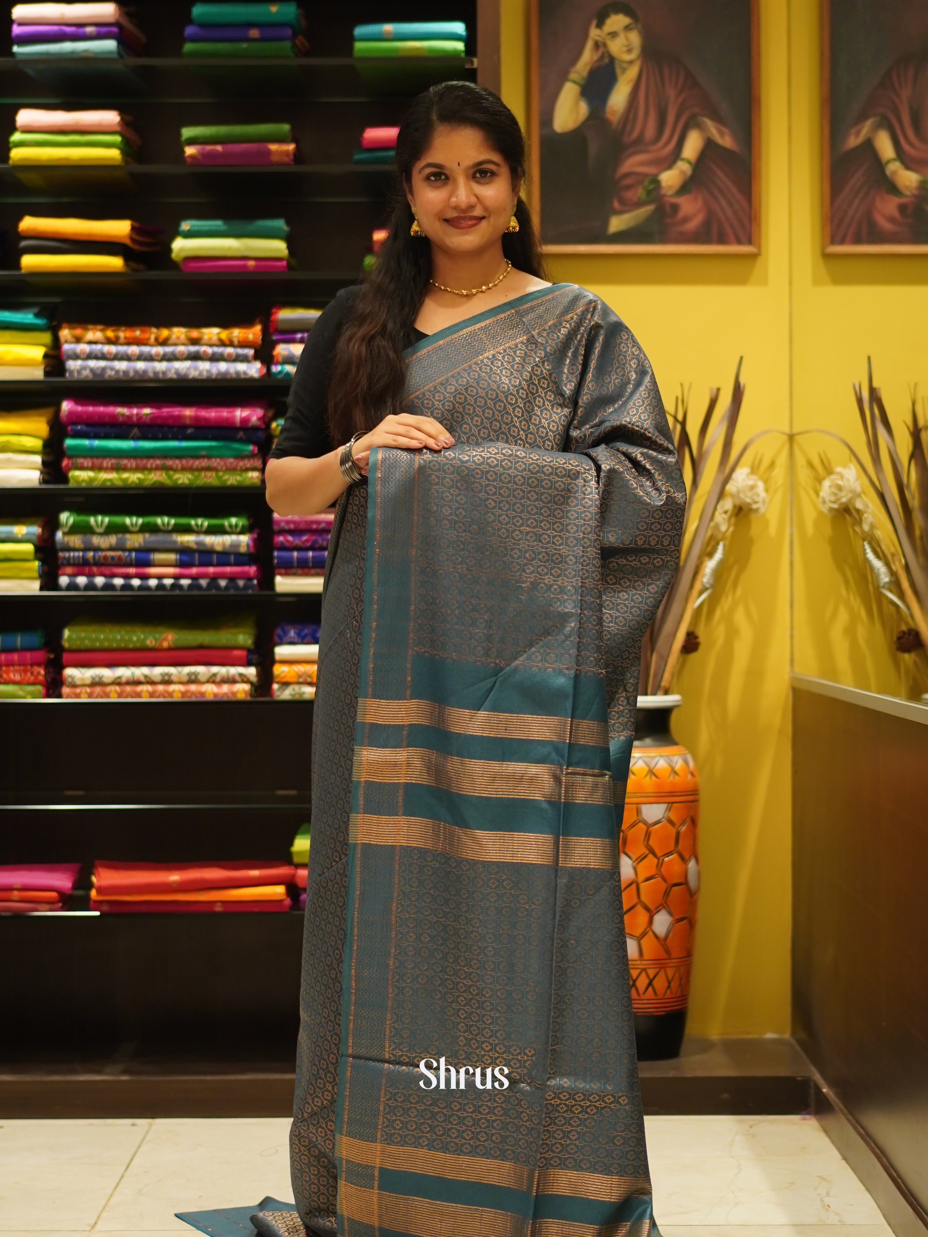 Pretty Grey Semi Tussar Saree features a zari brocade design that elevates its look. Its self zari striped Pallu adds a touch of sophistication, while the plain self blouse with zari border adds a modern twist to the overall ensemble.