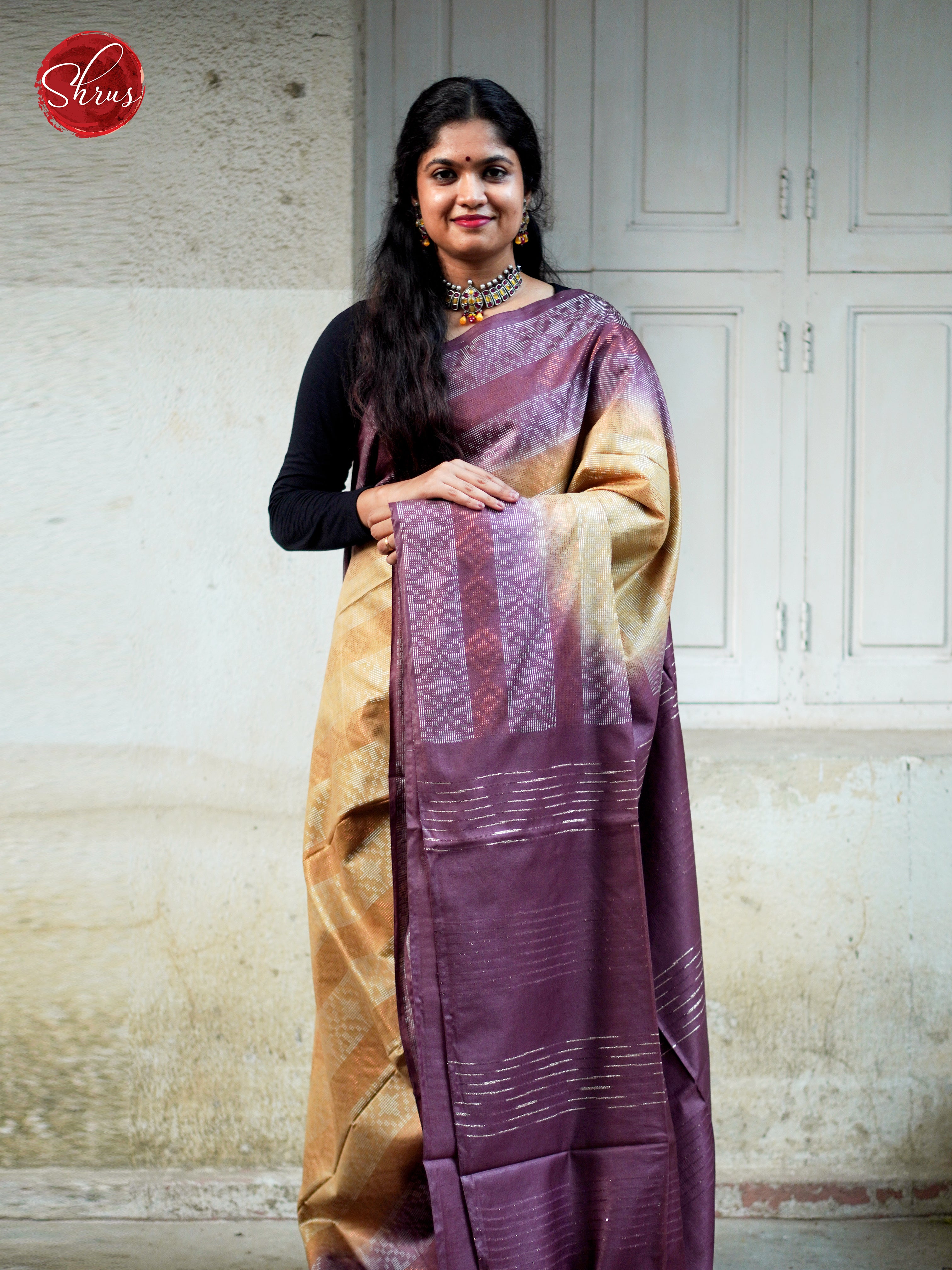 Pretty Beige Semi Tussar saree features beautiful zari strapes on the body and deep wine zari border. The traditional saree is completed with a contrasting deep wine zari-woven pallu and a plain blouse with a border.
