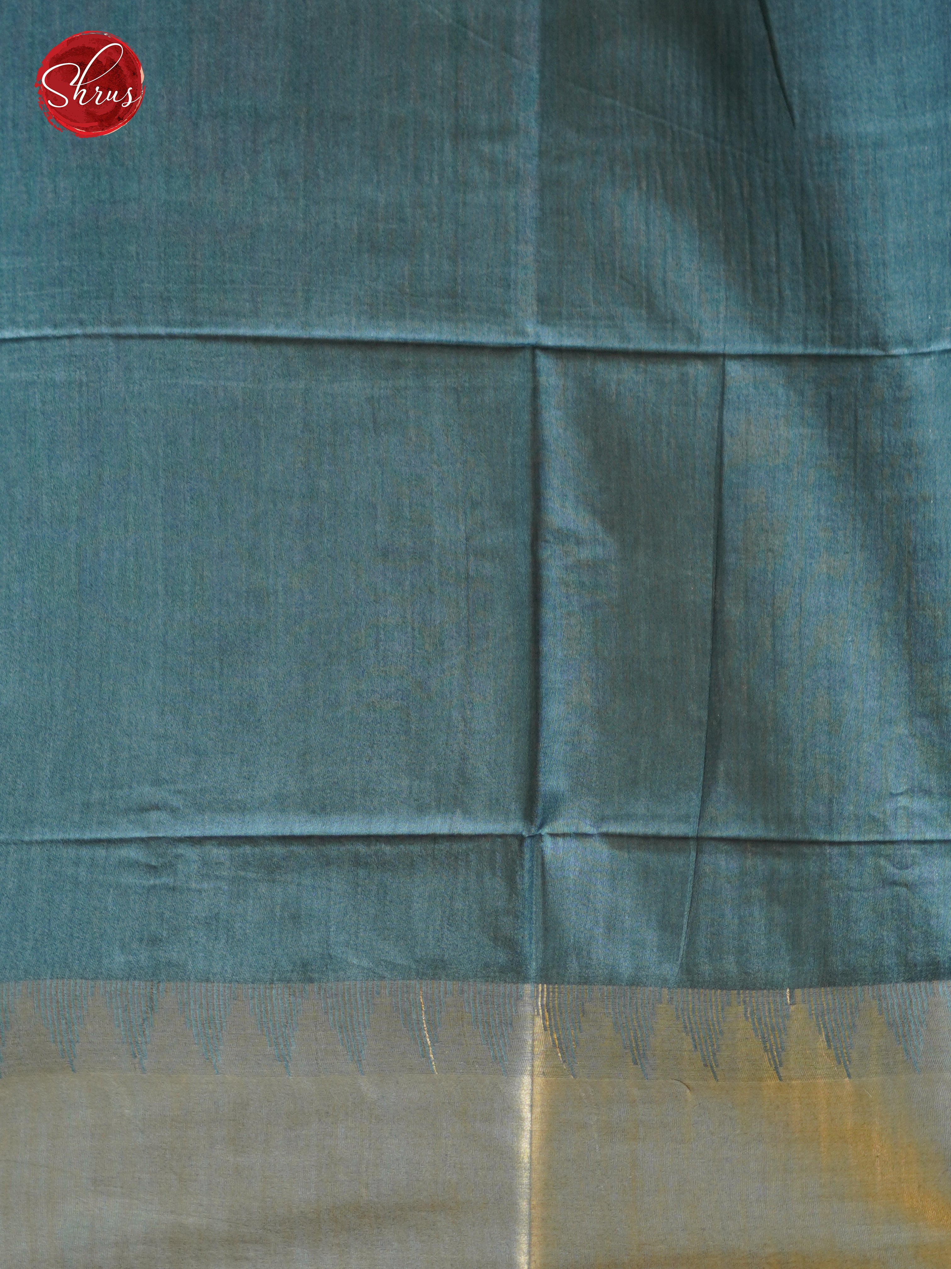 Elegant Green Semi Tussar saree showcases intricate zari checks on the body and a beautiful Contrast Grey zari border. The saree is paired with a traditional pallu woven in grey zari and a plain blouse with a border.