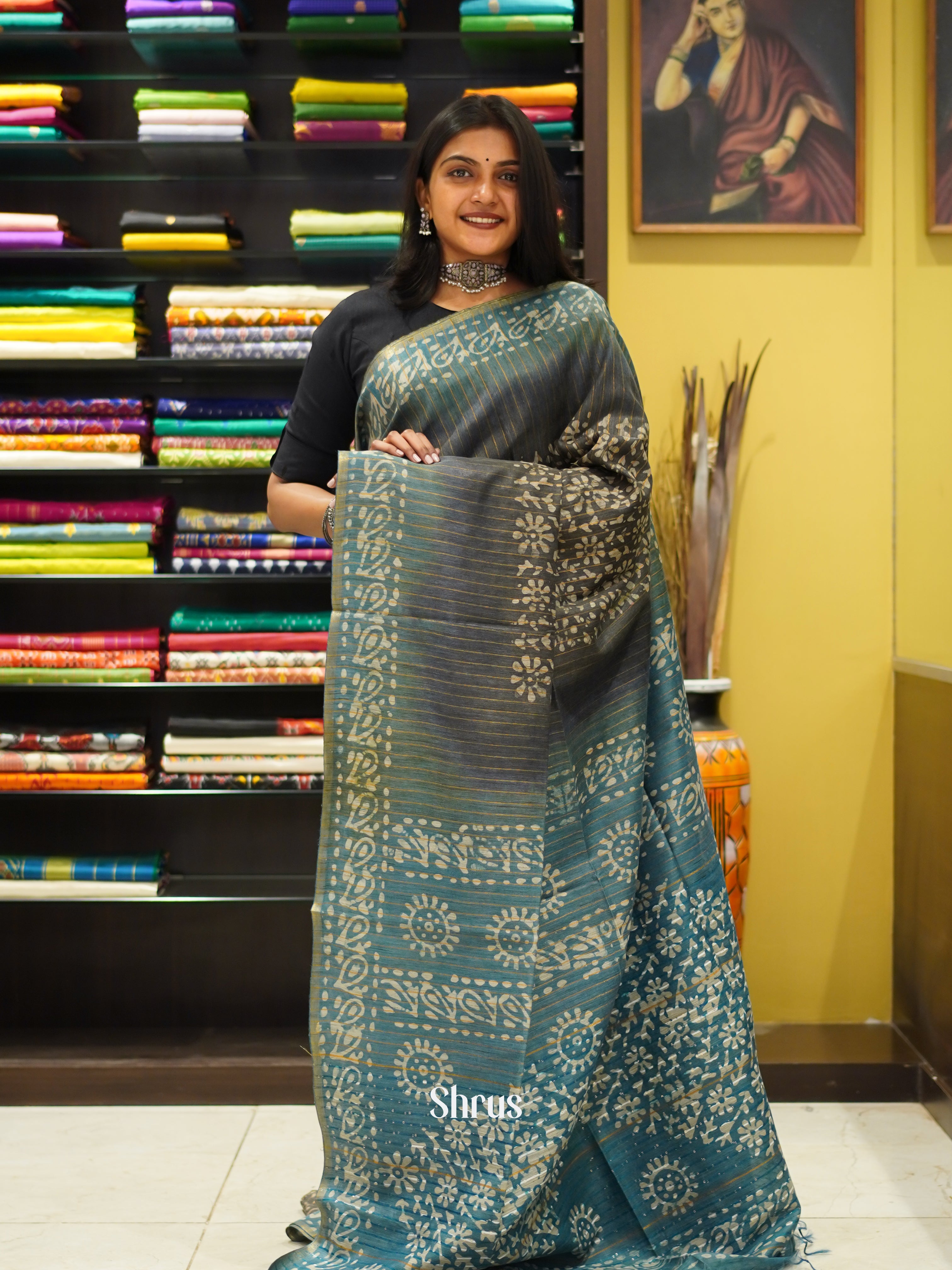 Grey & Blue - Bhatik Saree