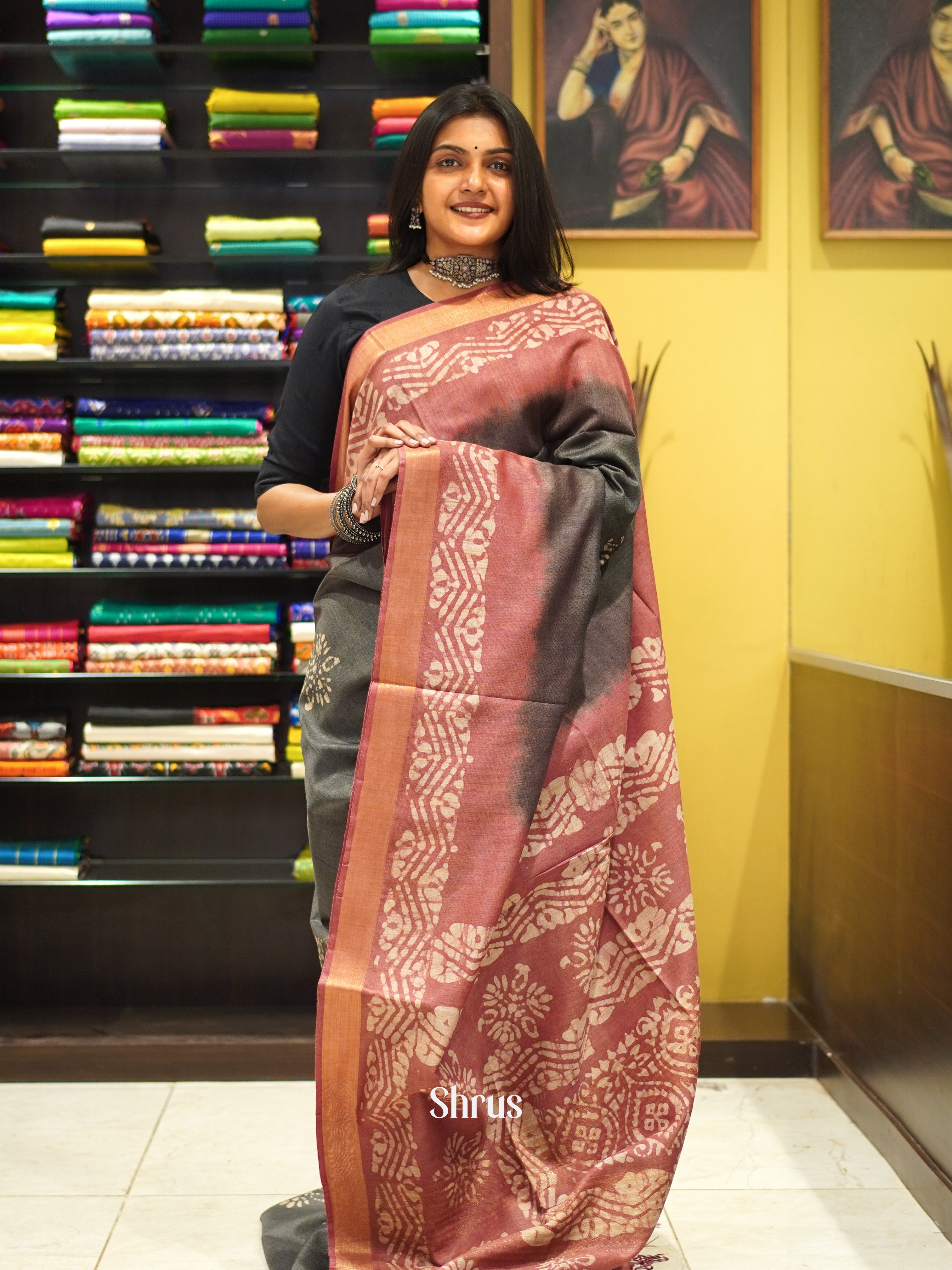 Elegant Elephant Black Bhatik saree boasts a stunning floral pattern on the body and a contrast Red printed, Zari border. The contrast Red pallu adds a touch of glamour. Complete with a matching contrast blouse, this saree is the perfect choice for a polished look.