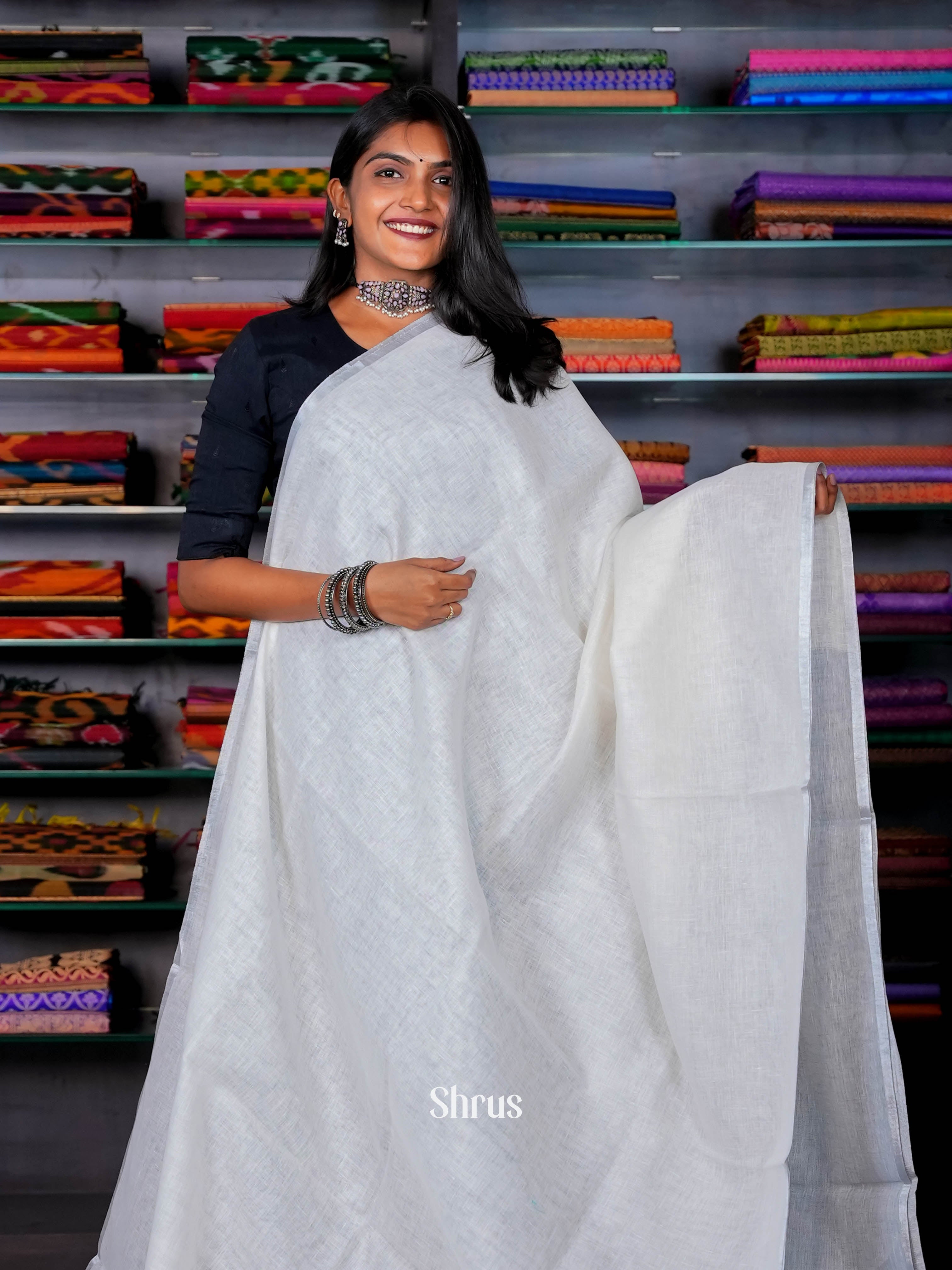Cream & grey - Linen Saree