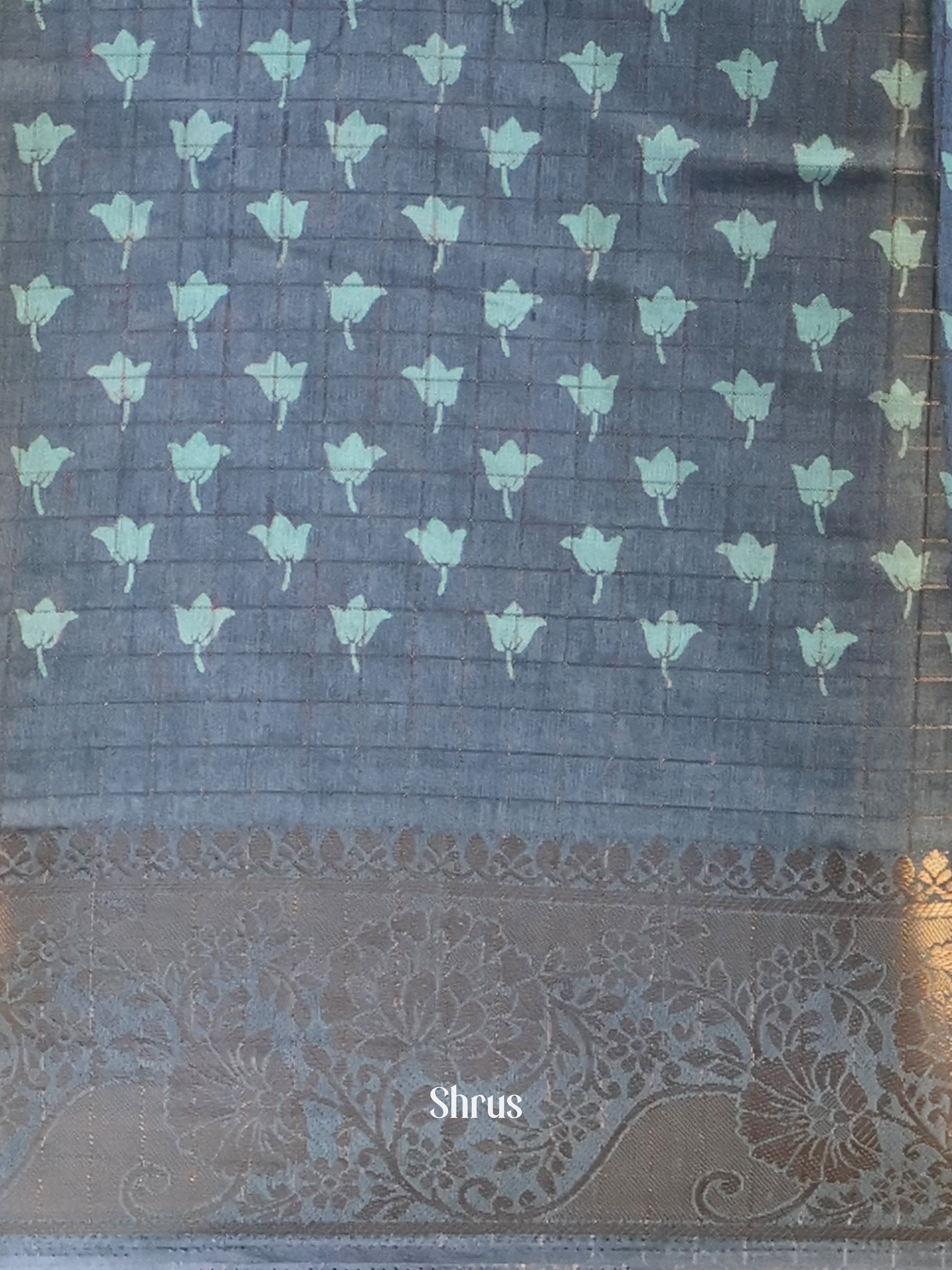 Elegant Grey Semi Crepe Saree is adorned with a stunning floral print , zari checks and accented with a self zari border, adding a touch of elegance. The saree comes with a matching self-printed blouse featuring a zari border, perfectly complementing the overall look.
