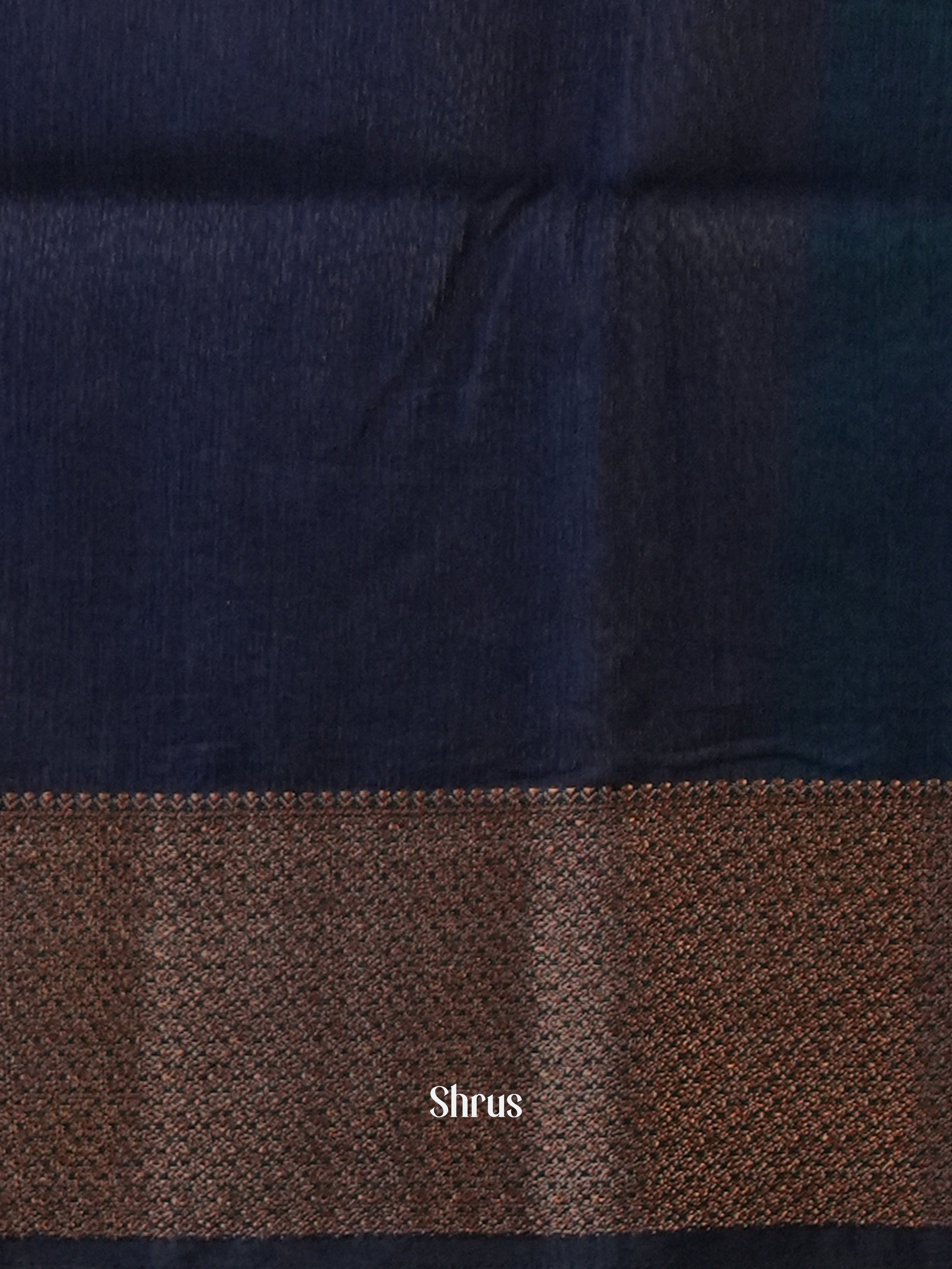 Beautiful Green Semi Jute Saree features a plain body, contrast Blue zari border, and a complementary pallu. Its ensemble is completed with a plain blue blouse with a zari border.
