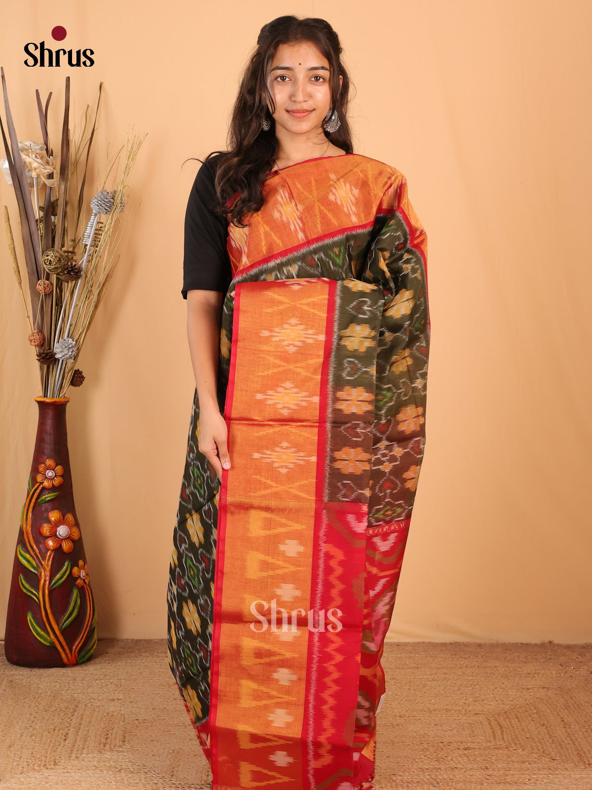 Elegant Chutney Green pochampally silk cotton saree with intricate ikat patterns looks aesthetically elegant. The splendid contrast Red ikkat Border & Pallu comes with ikkat floral pattern lends compliments Comes with a Plain Red blouse with border completes the ensemble