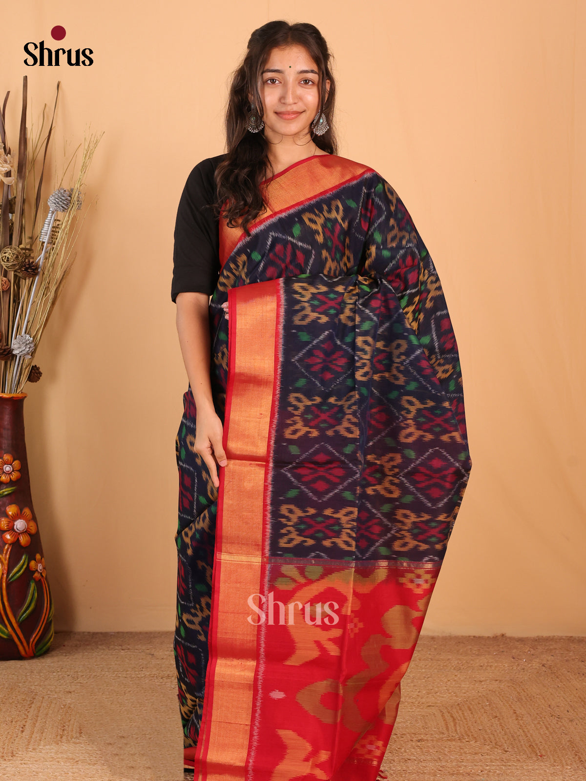 Very Pretty Violet pochampally silk cotton saree with intricate ikat patterns looks aesthetically elegant. The splendid contrast Red ikkat Border & Pallu comes with ikkat floral pattern lends compliments Comes with a Plain Red blouse with border completes the ensemble