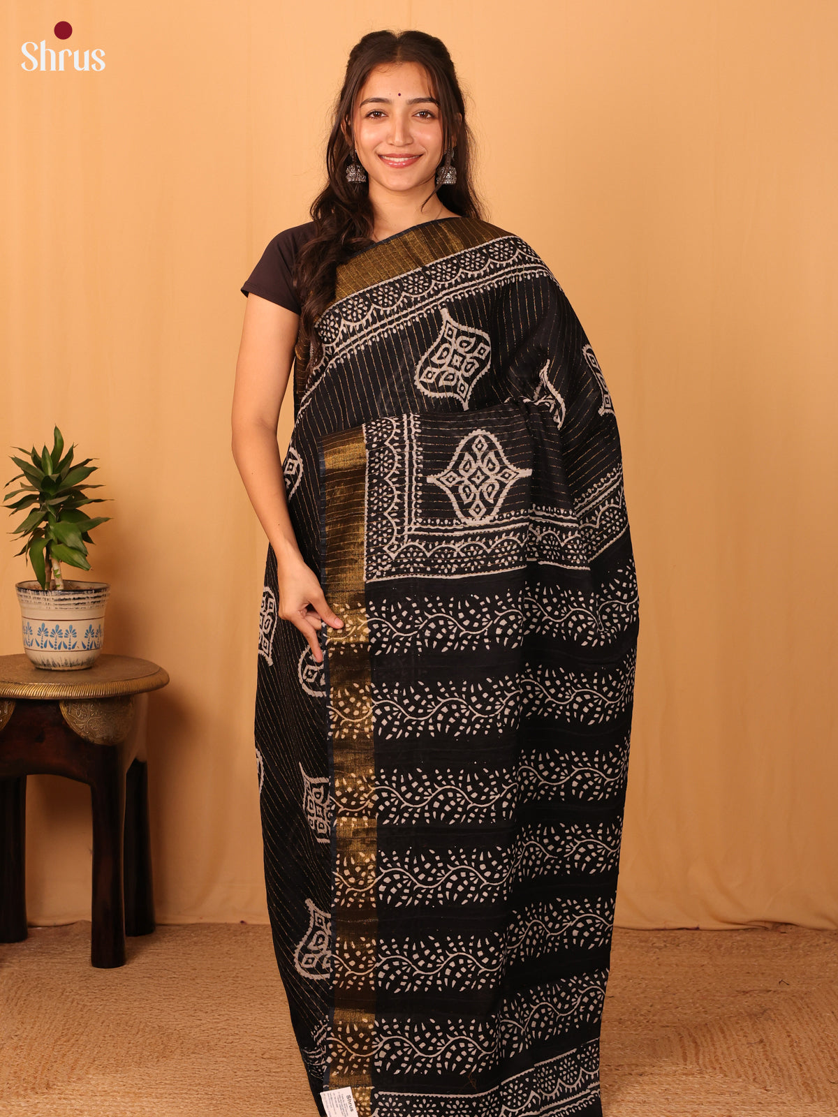 Black- Semi Chanderi Saree