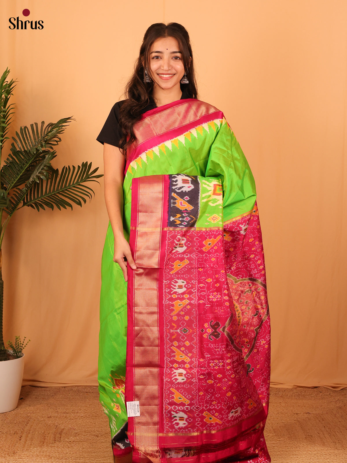 Parrot Green & Maroon - Ikkat Silk Saree