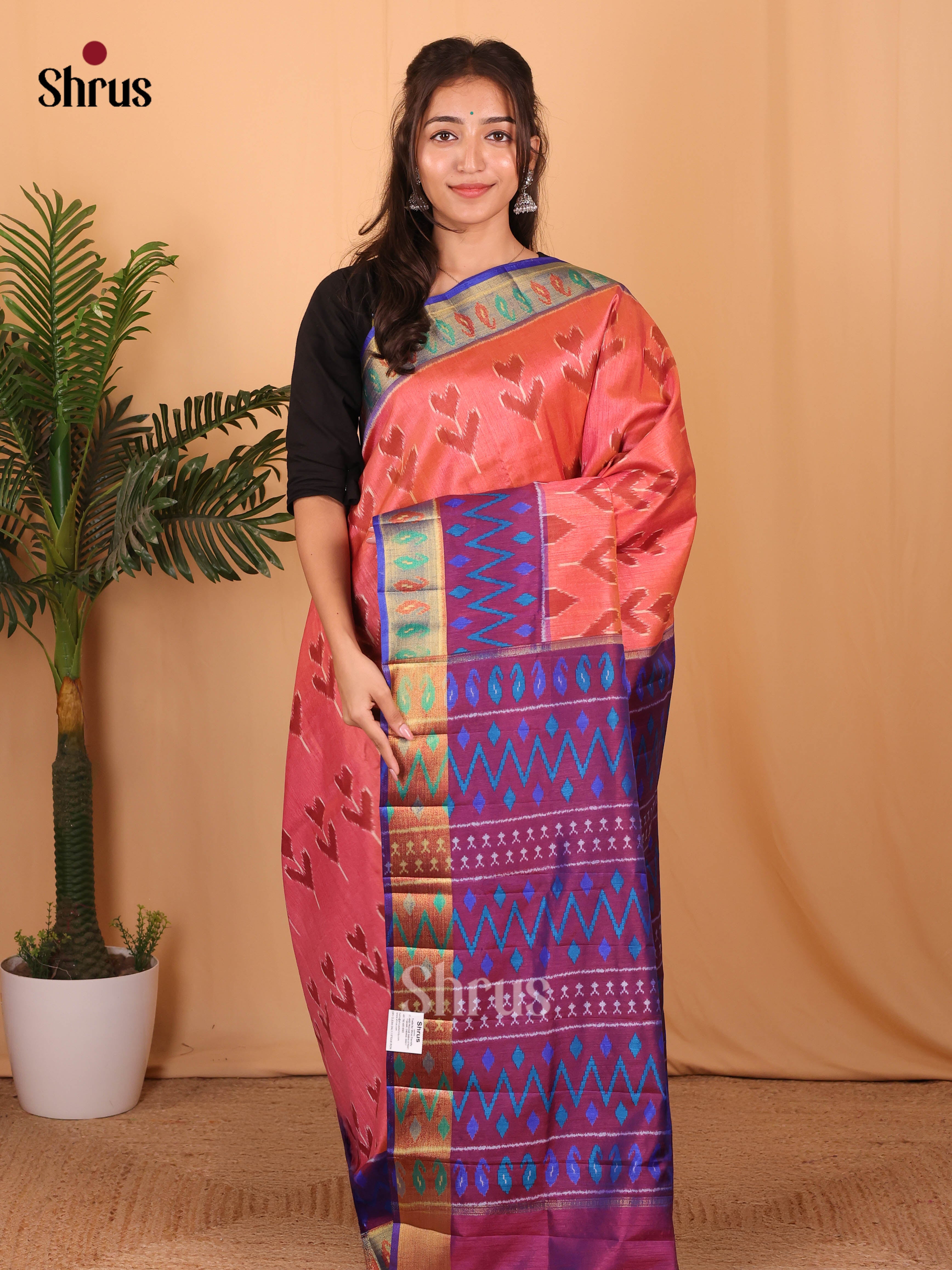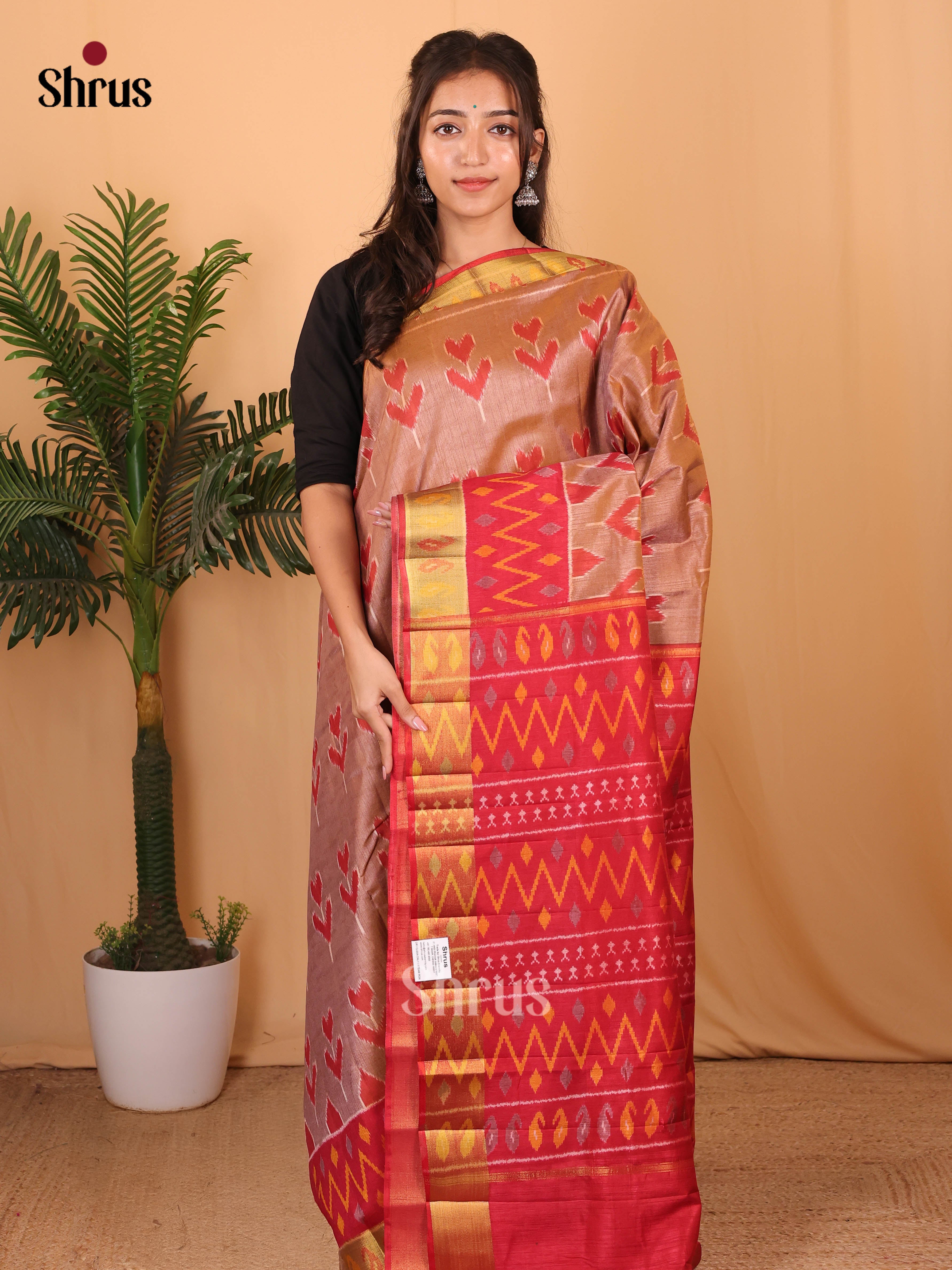 Peach & Brown- Semi Patola Saree