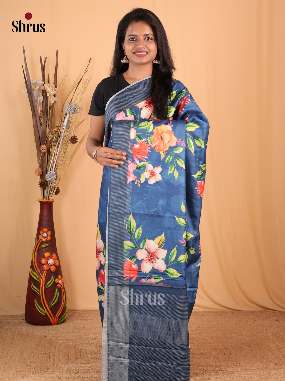 Pretty Blue Champa Semi Tussar Saree features an enchanting digital floral print on the body. The saree also includes a self border & Pallu and a matching blouse to complete the ensemble.