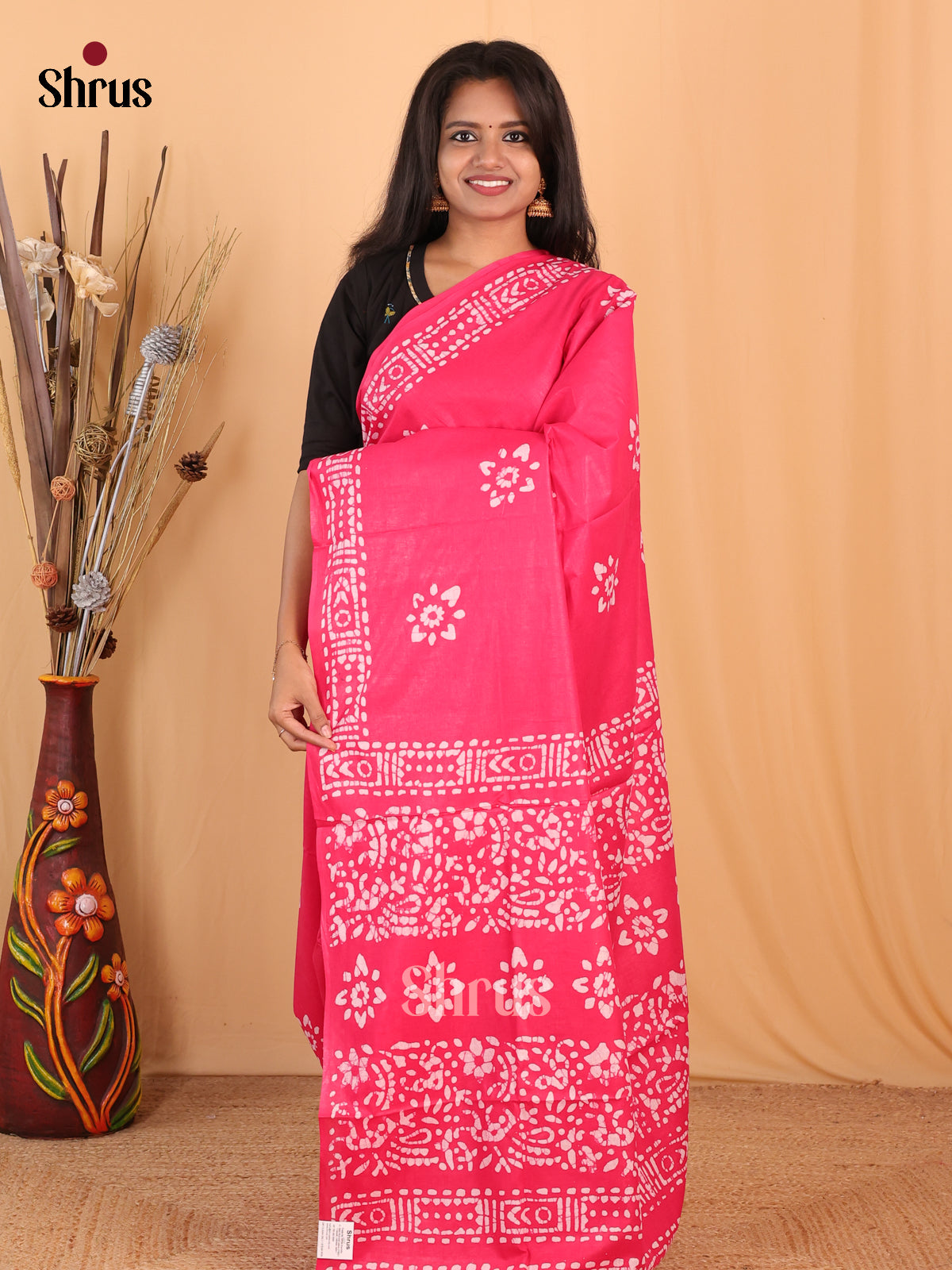 Charming Pink Bhatik Saree features a stunning batik floral print on the body and is complemented by a self printed border and pallu. Paired with self blouse with border adds the perfect finishing touch
